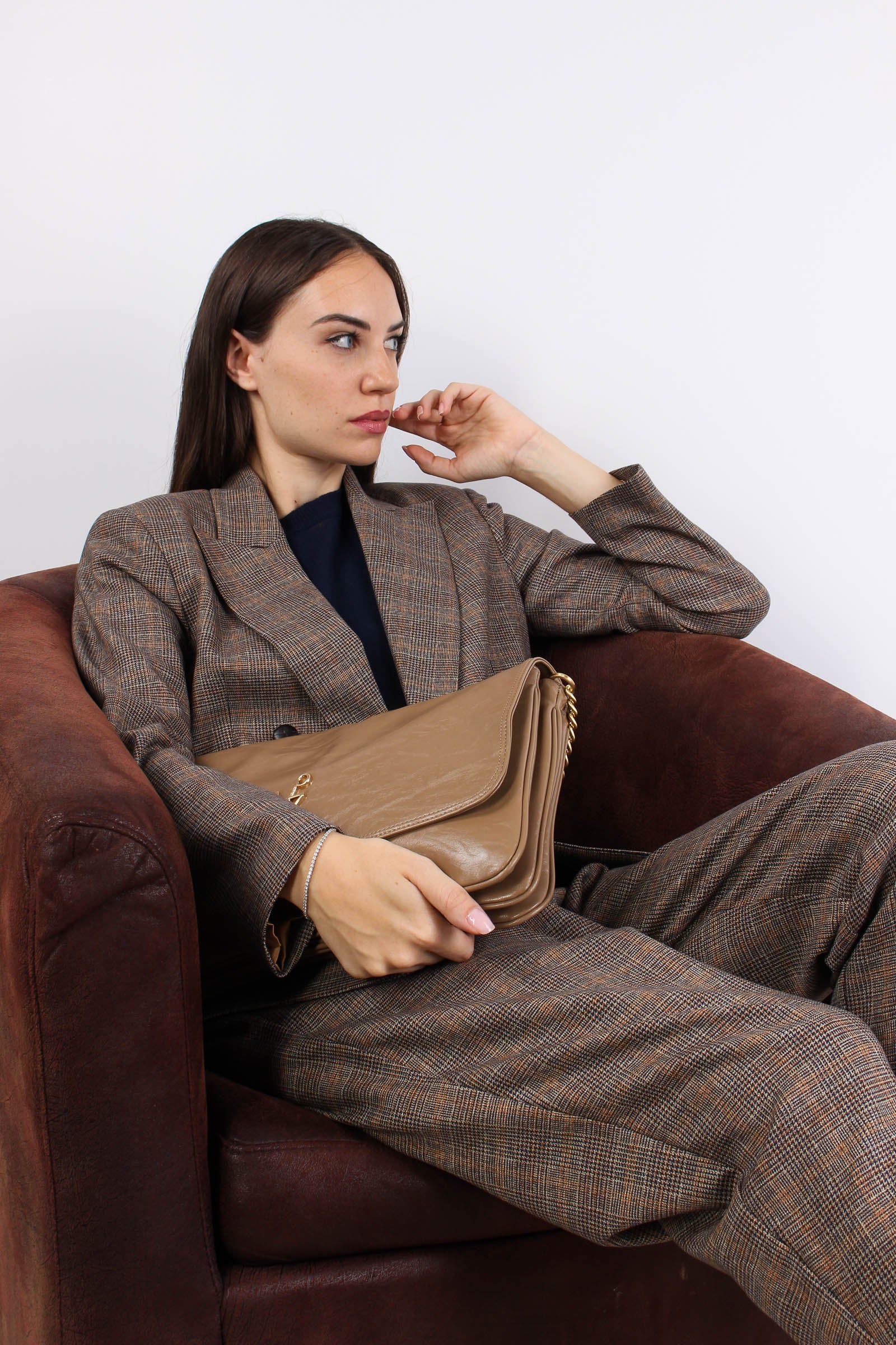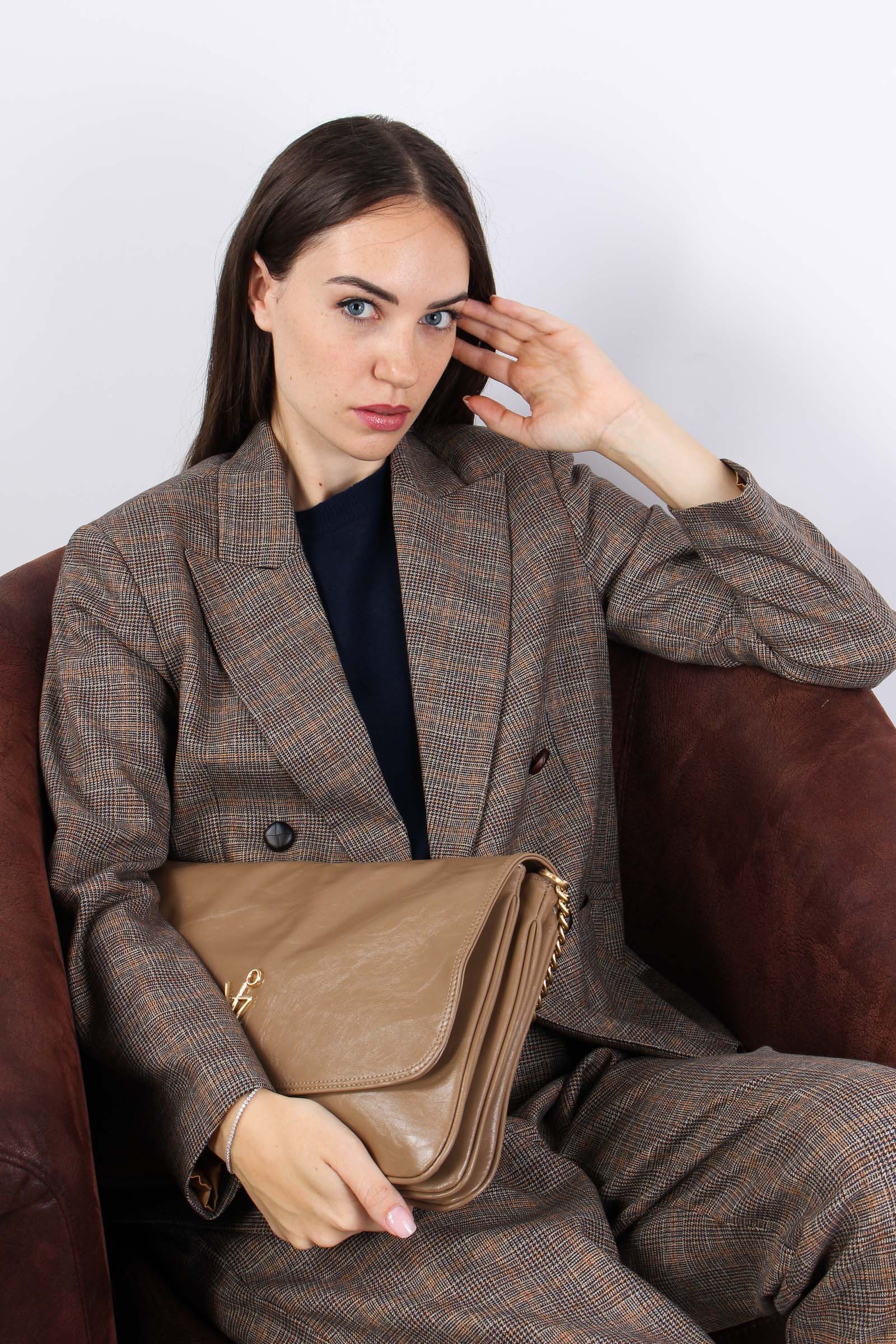 Giacca Galles Bottoni Pelle Kaki/fango