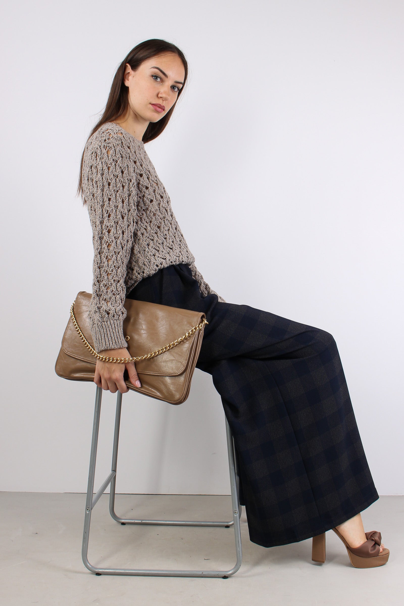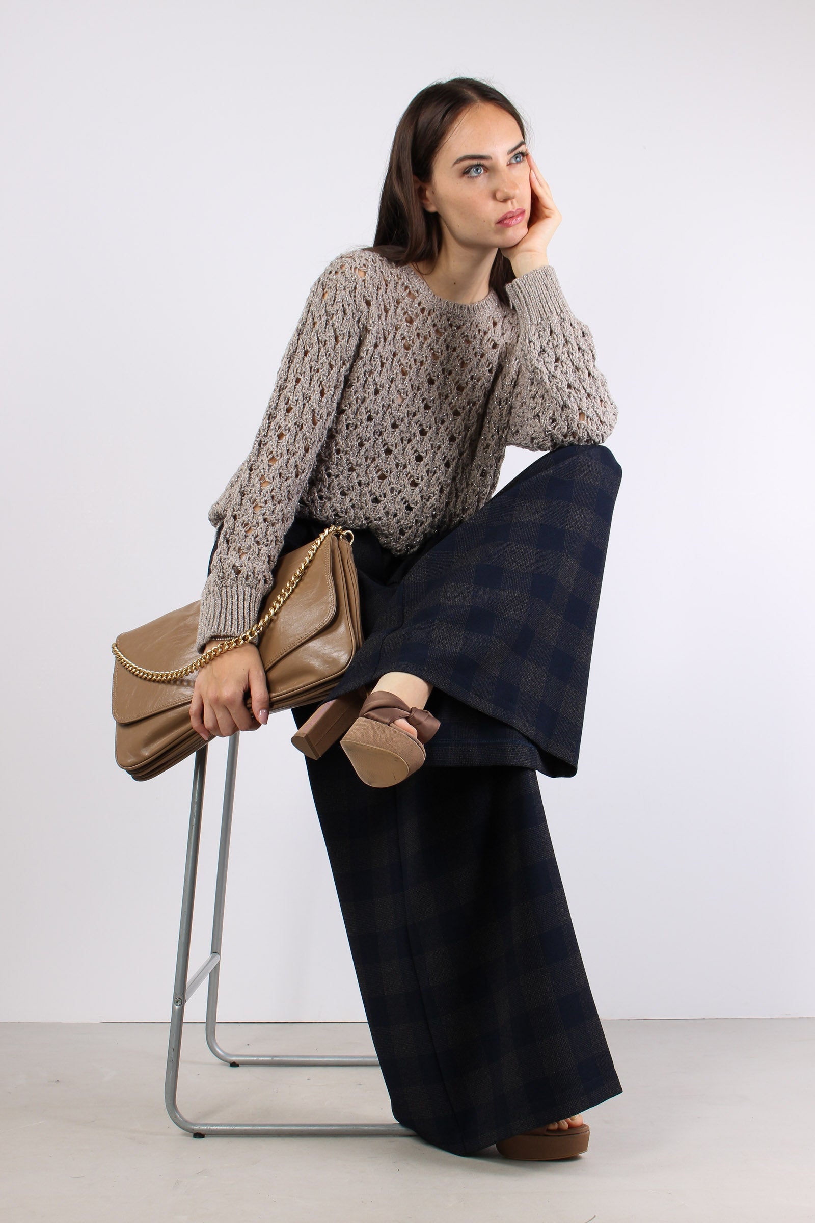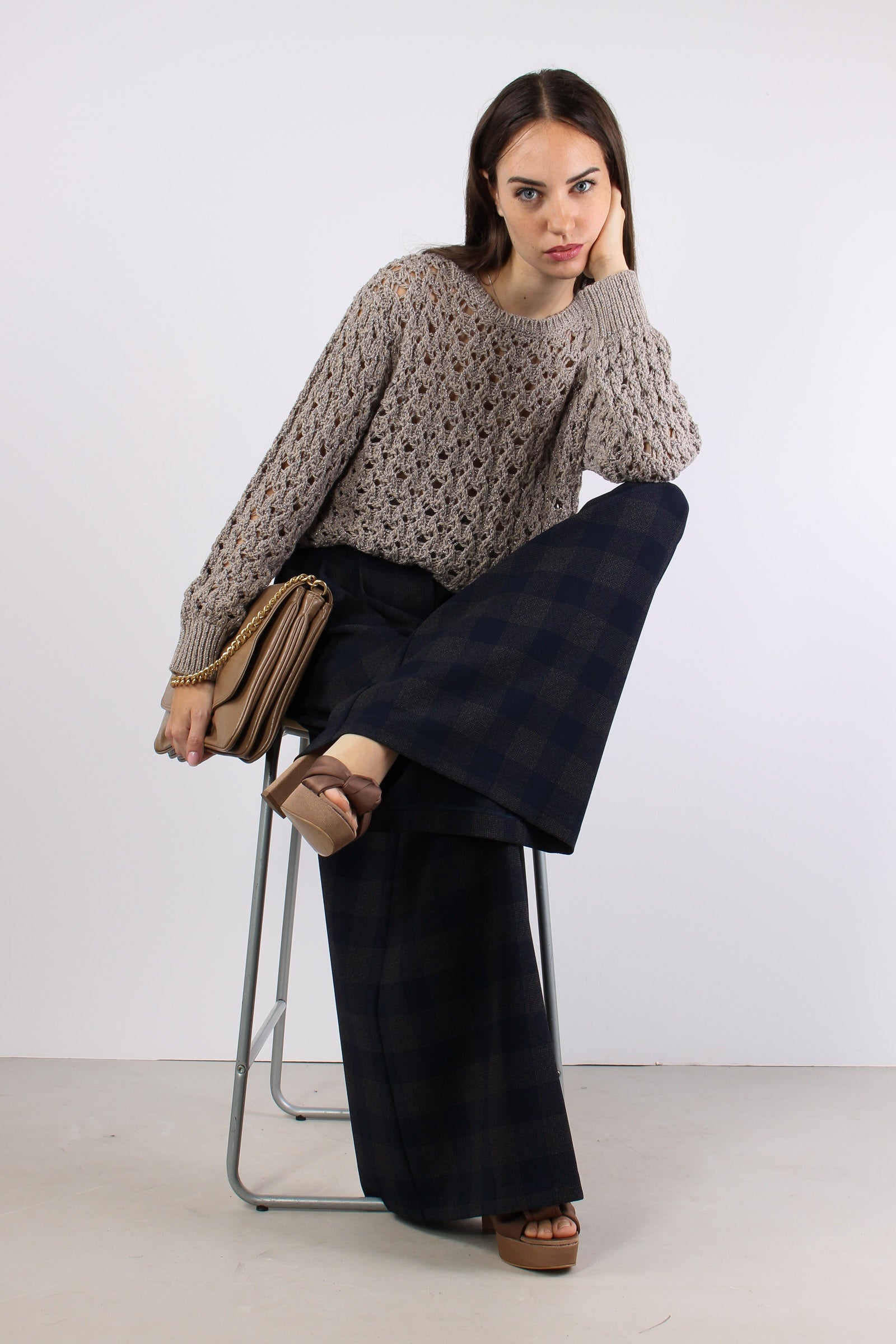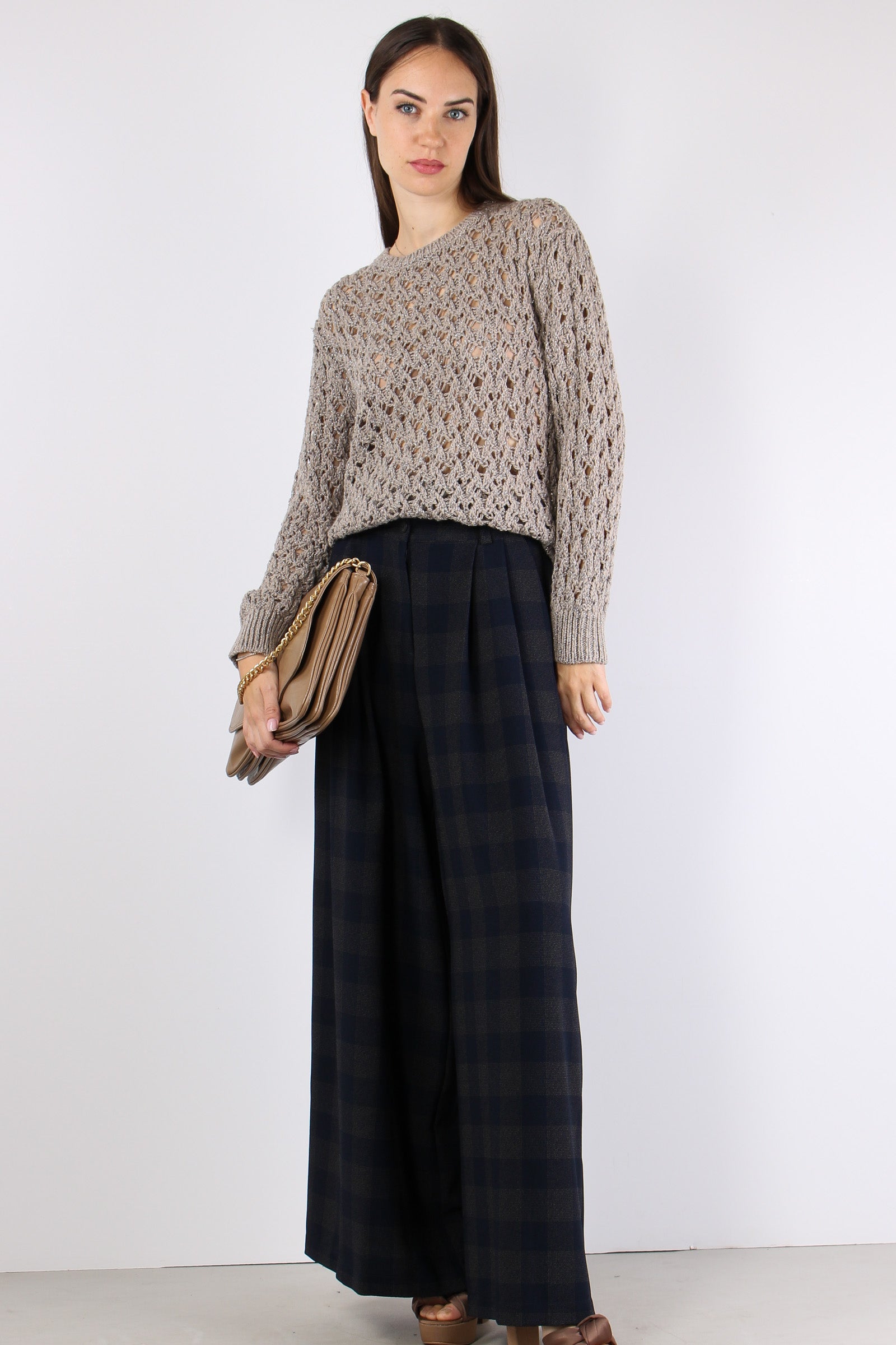 Maglia Traforata Inserto Lurex Tortora