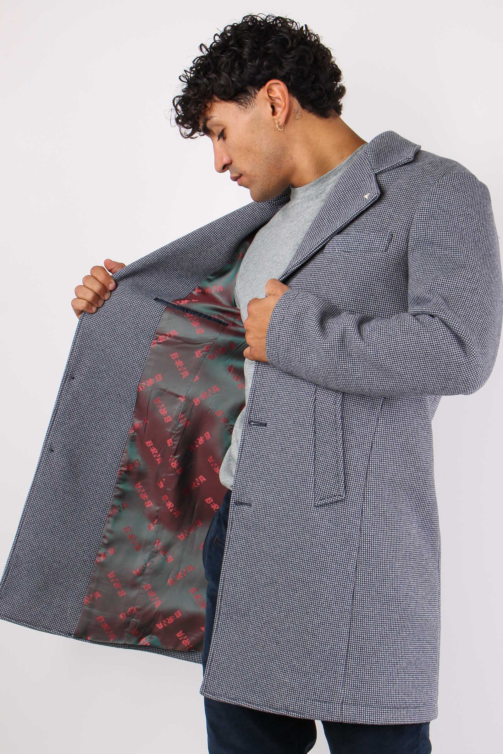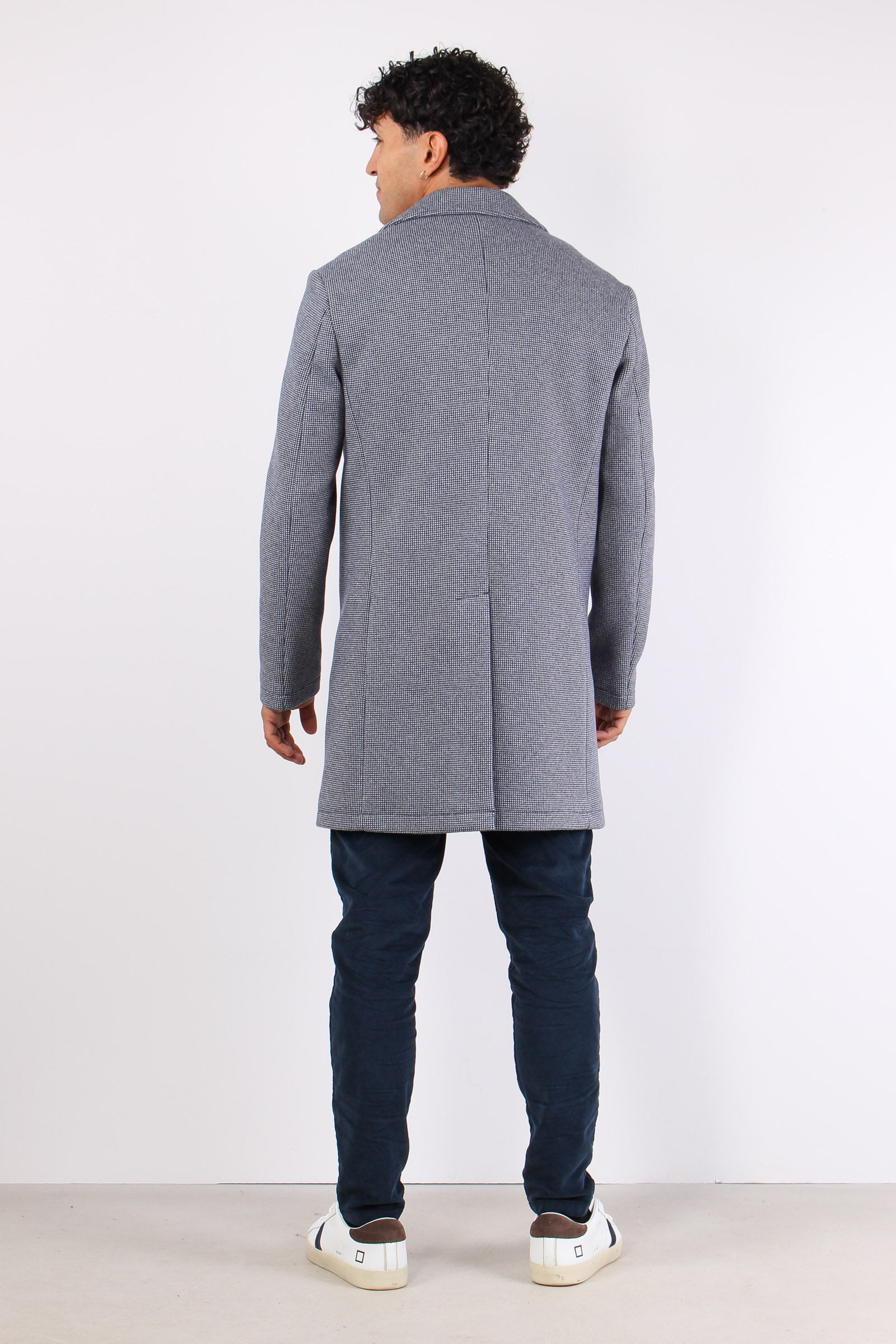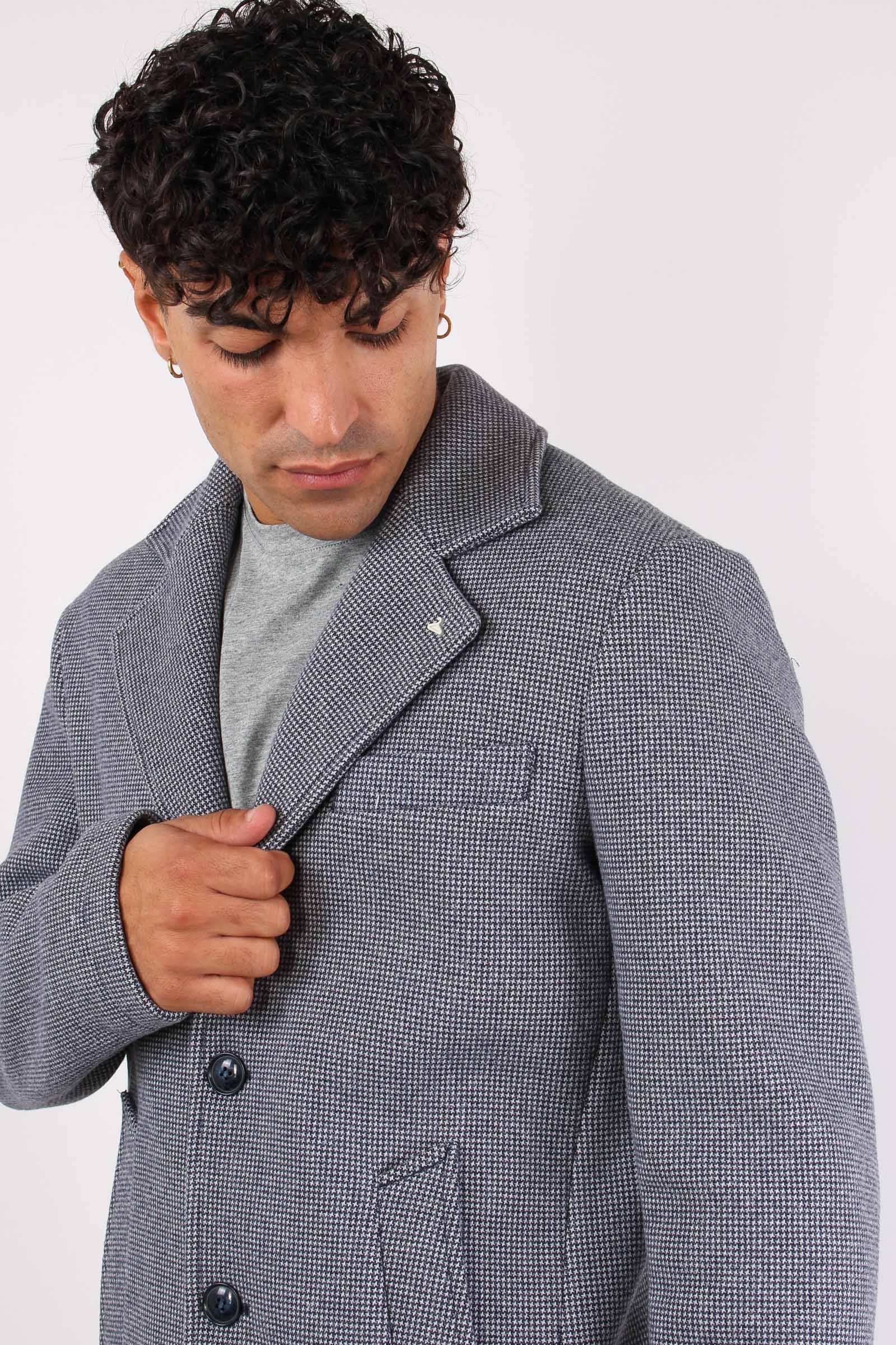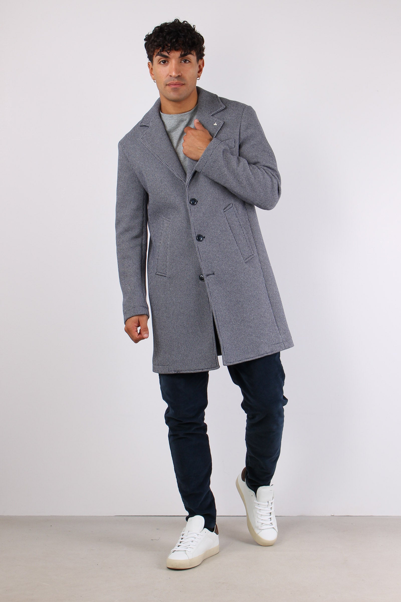 Cappotto Monopetto Puntinato Blu