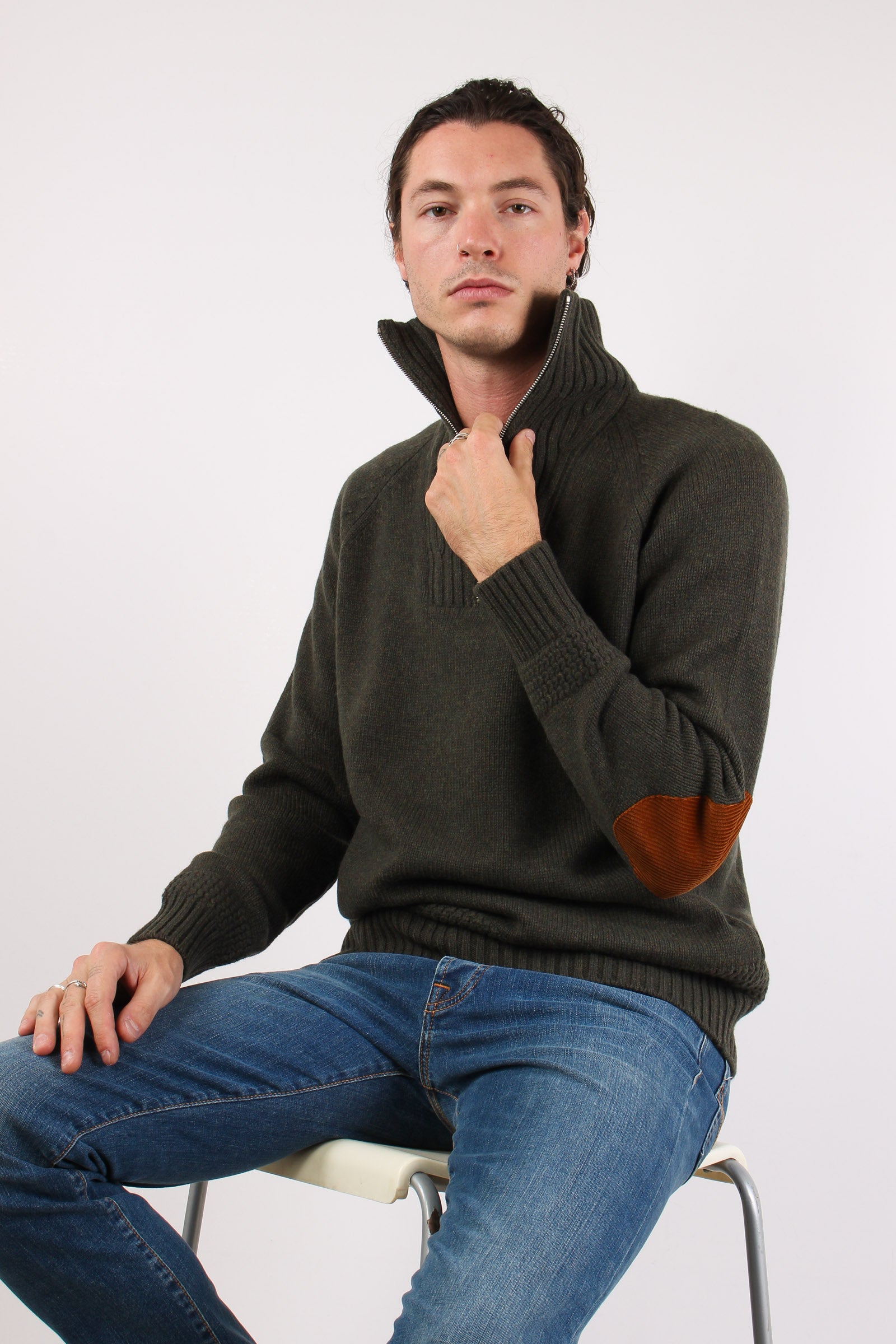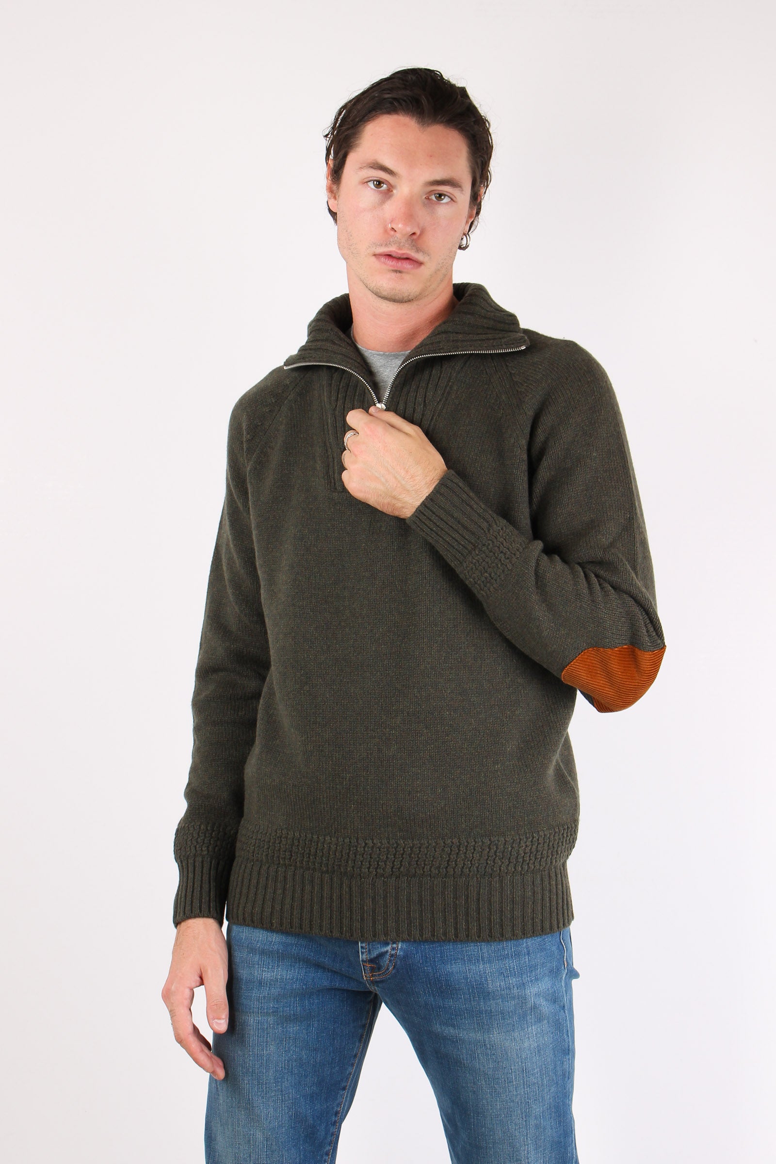 Mezza Zip Tasca Velluto Militare
