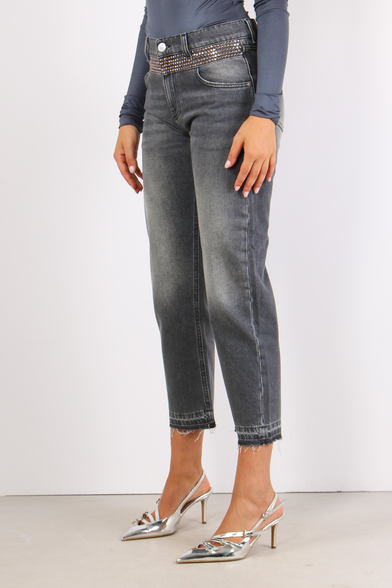 Jeans Inserto Strass Grigio