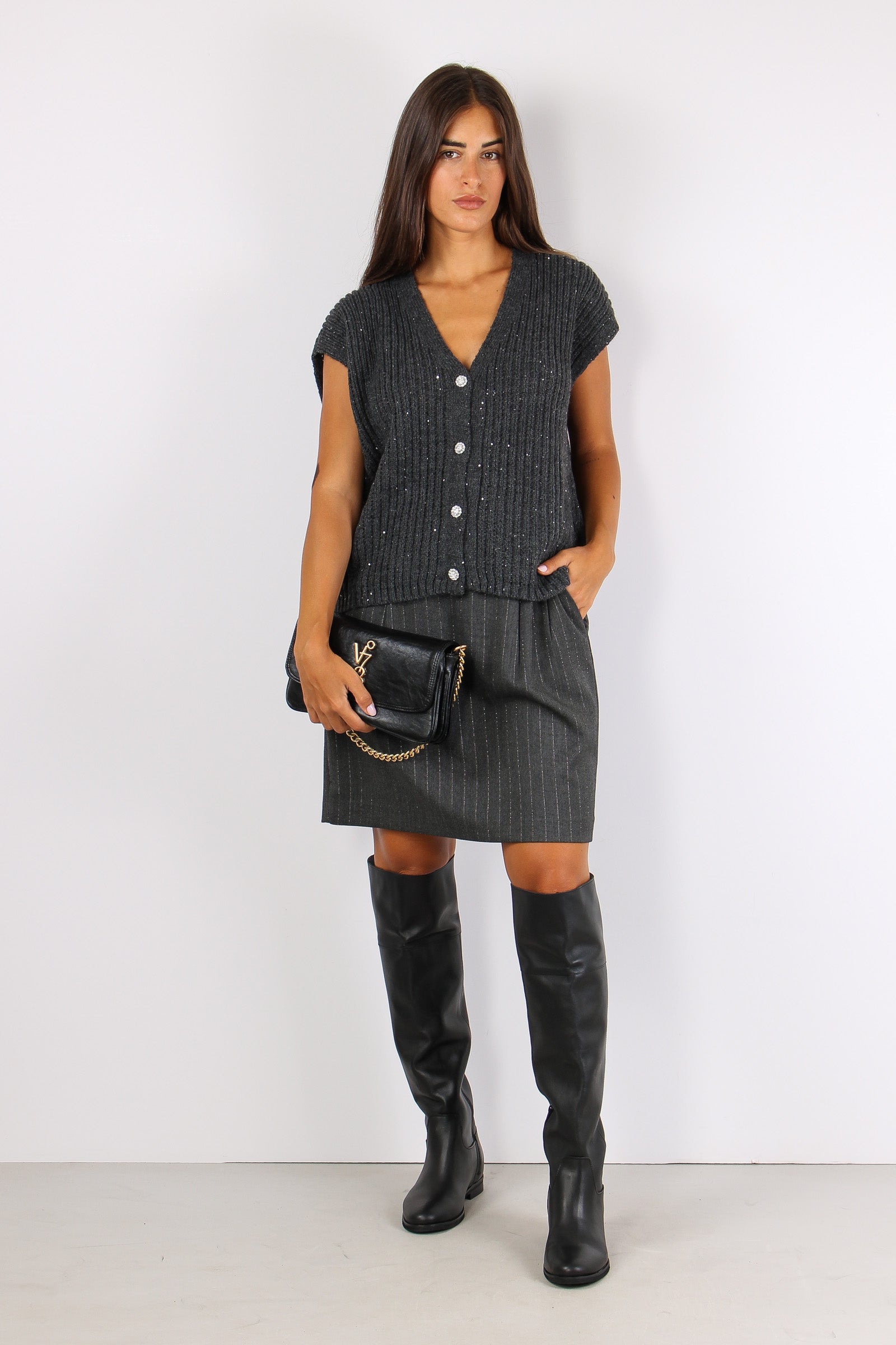 Inisio Gilet Costa Paillettes Antracite