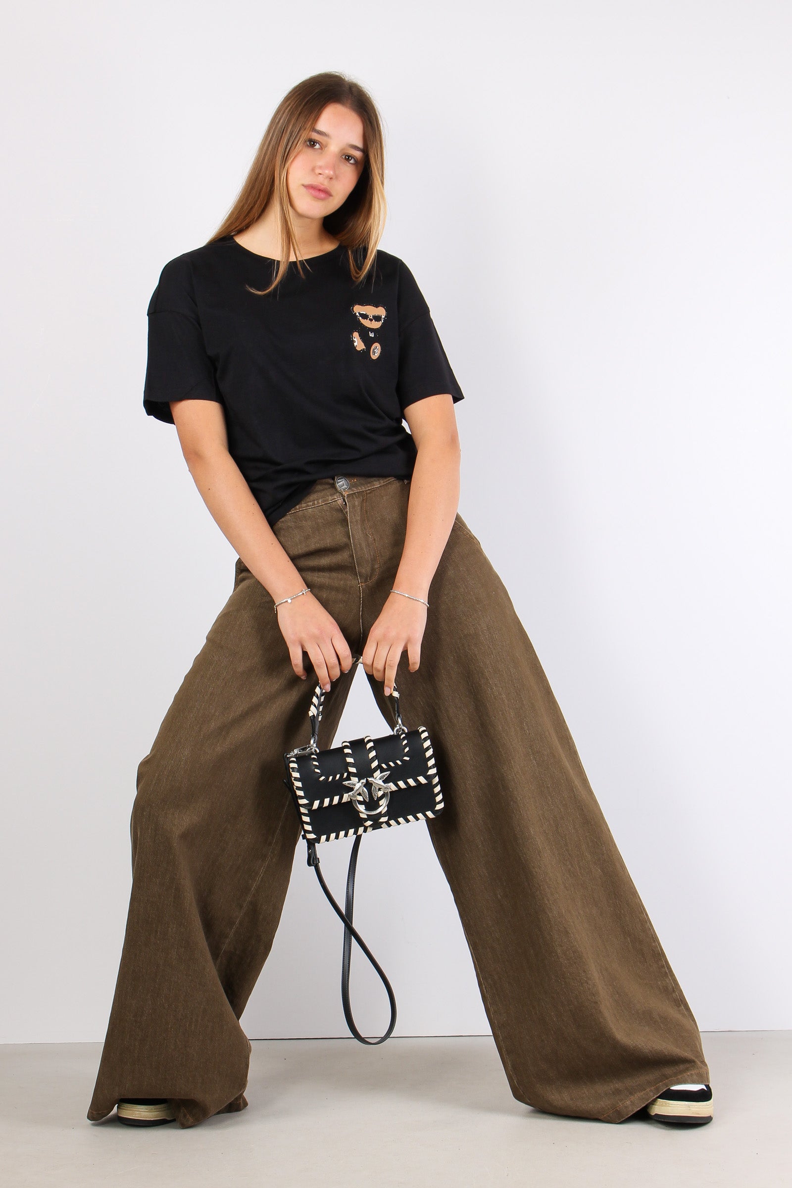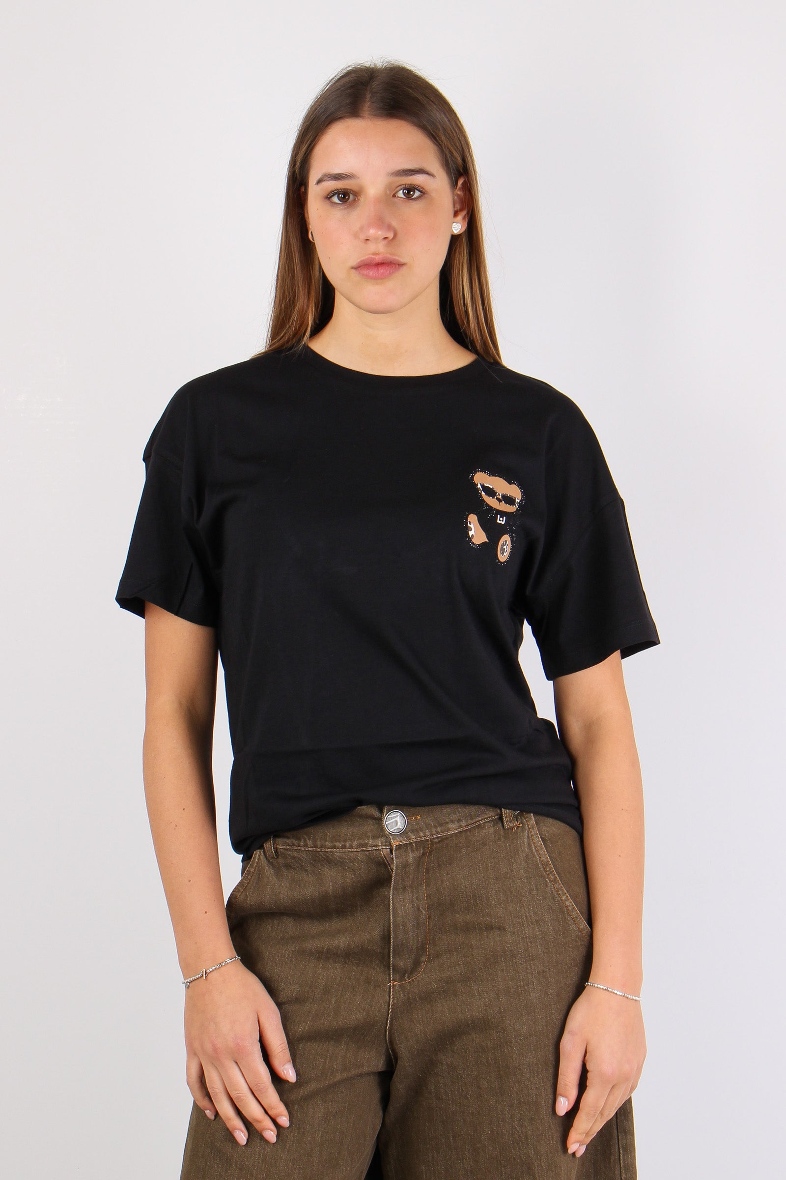 T-shirt Stampa Orso Laterale Nero/bear