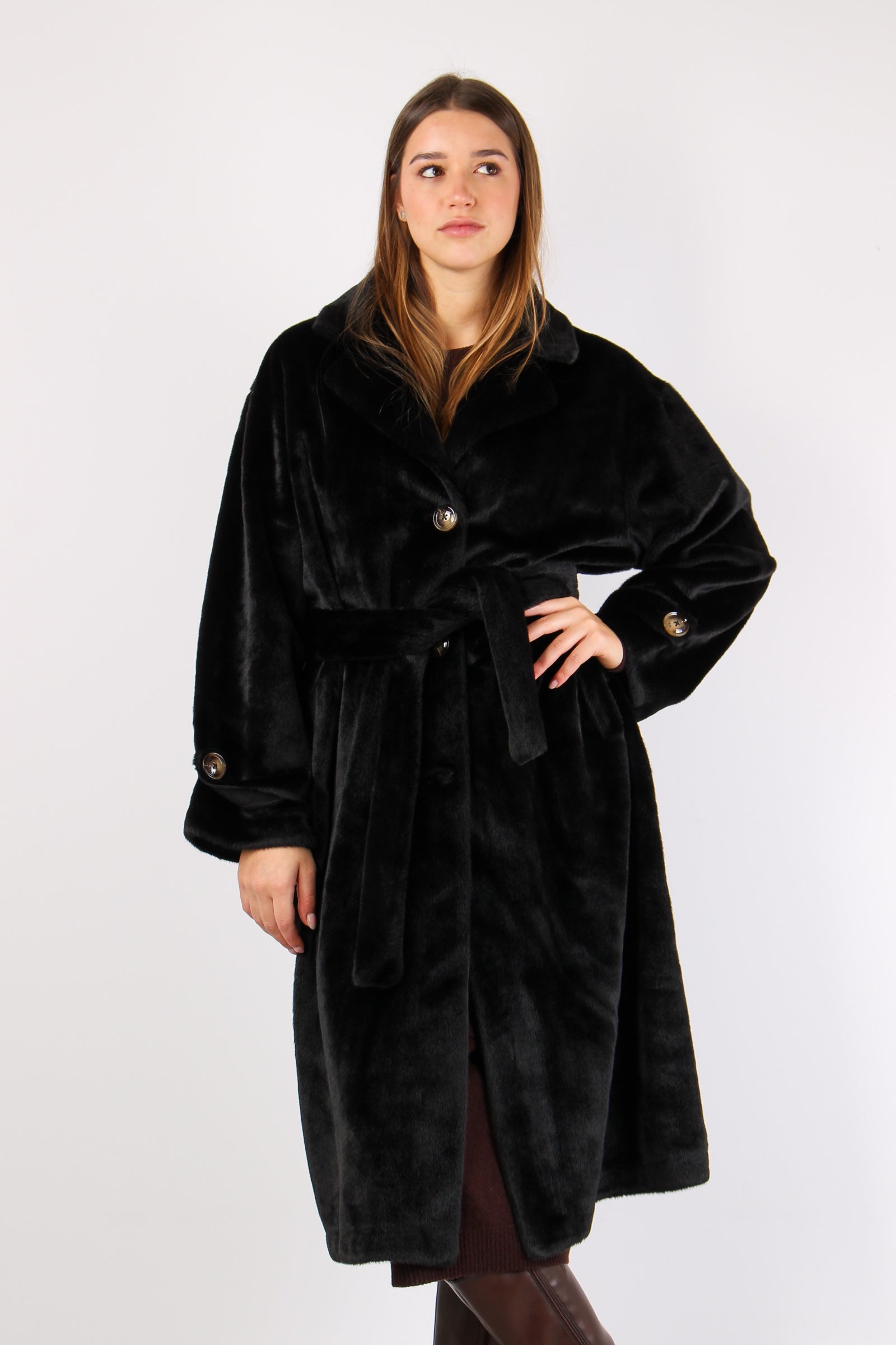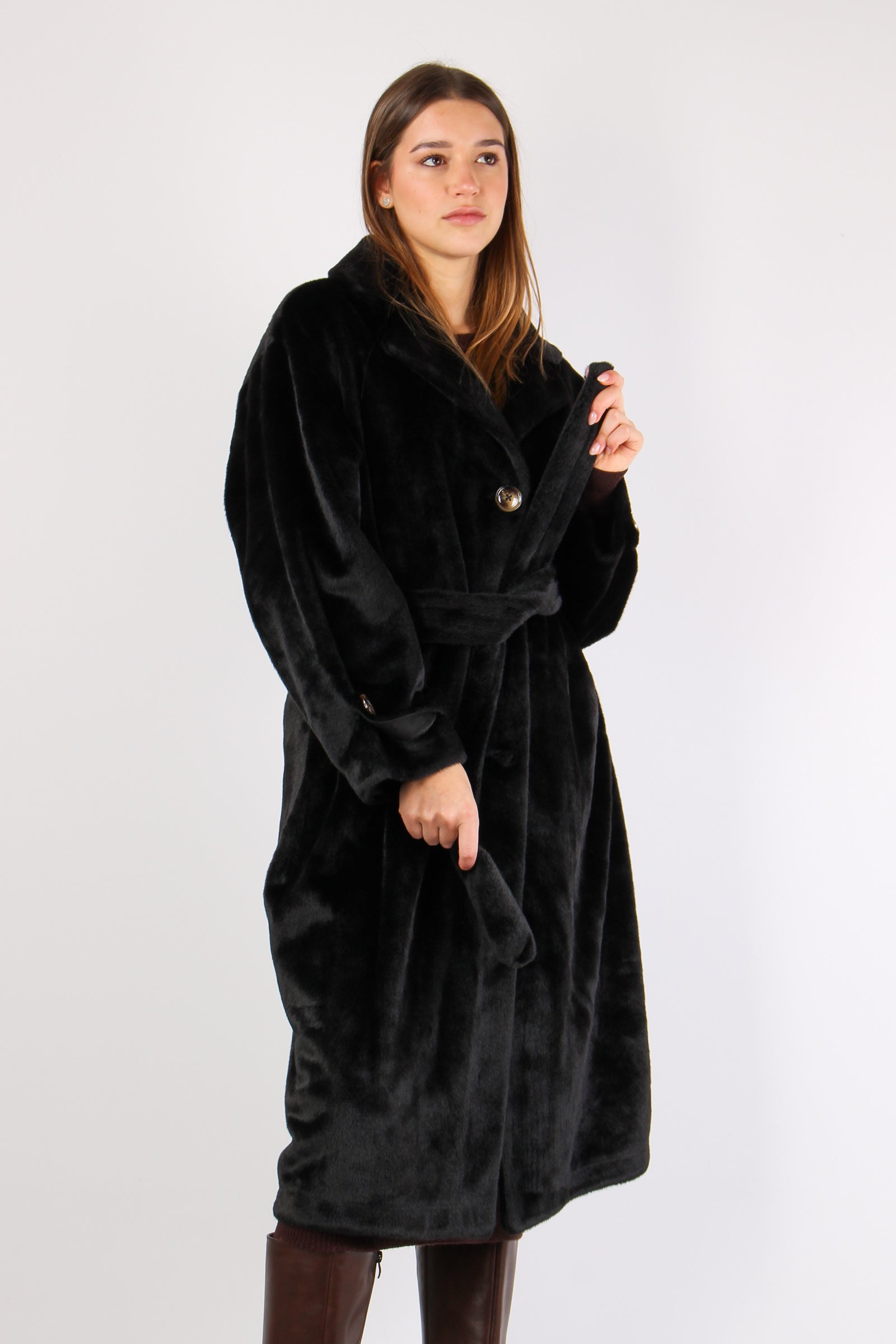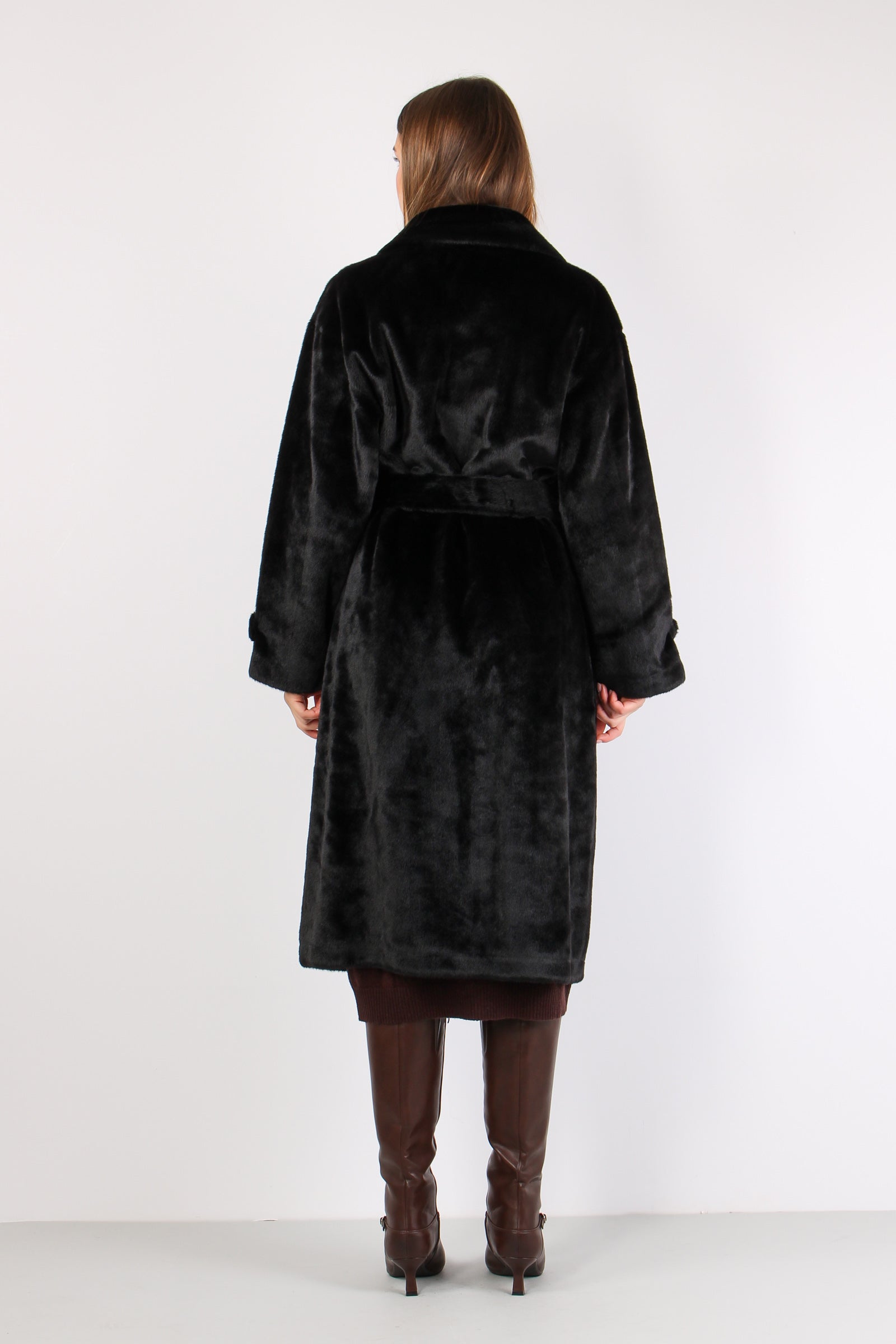 Chamlet Pelliccia Lunga Cintur Black