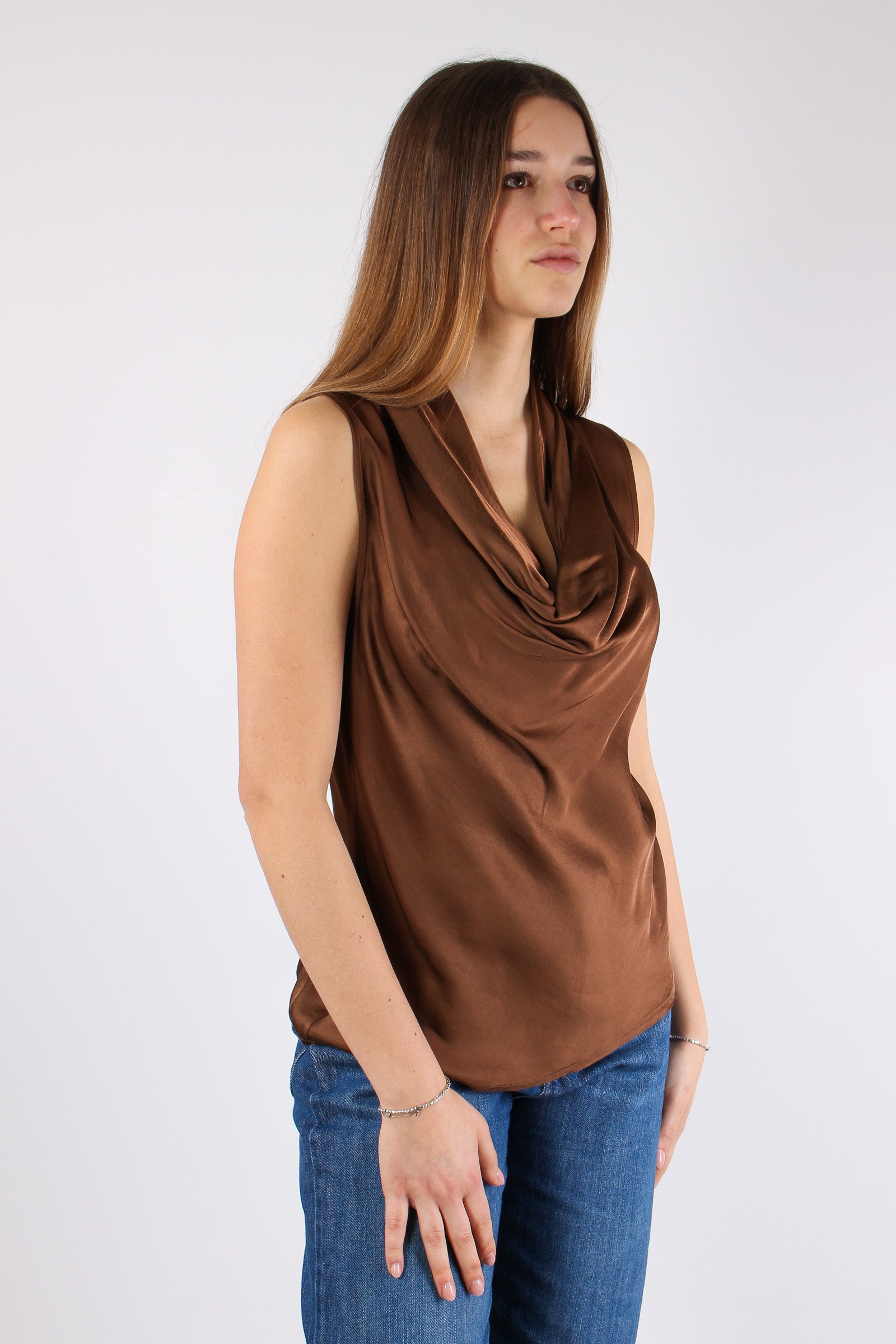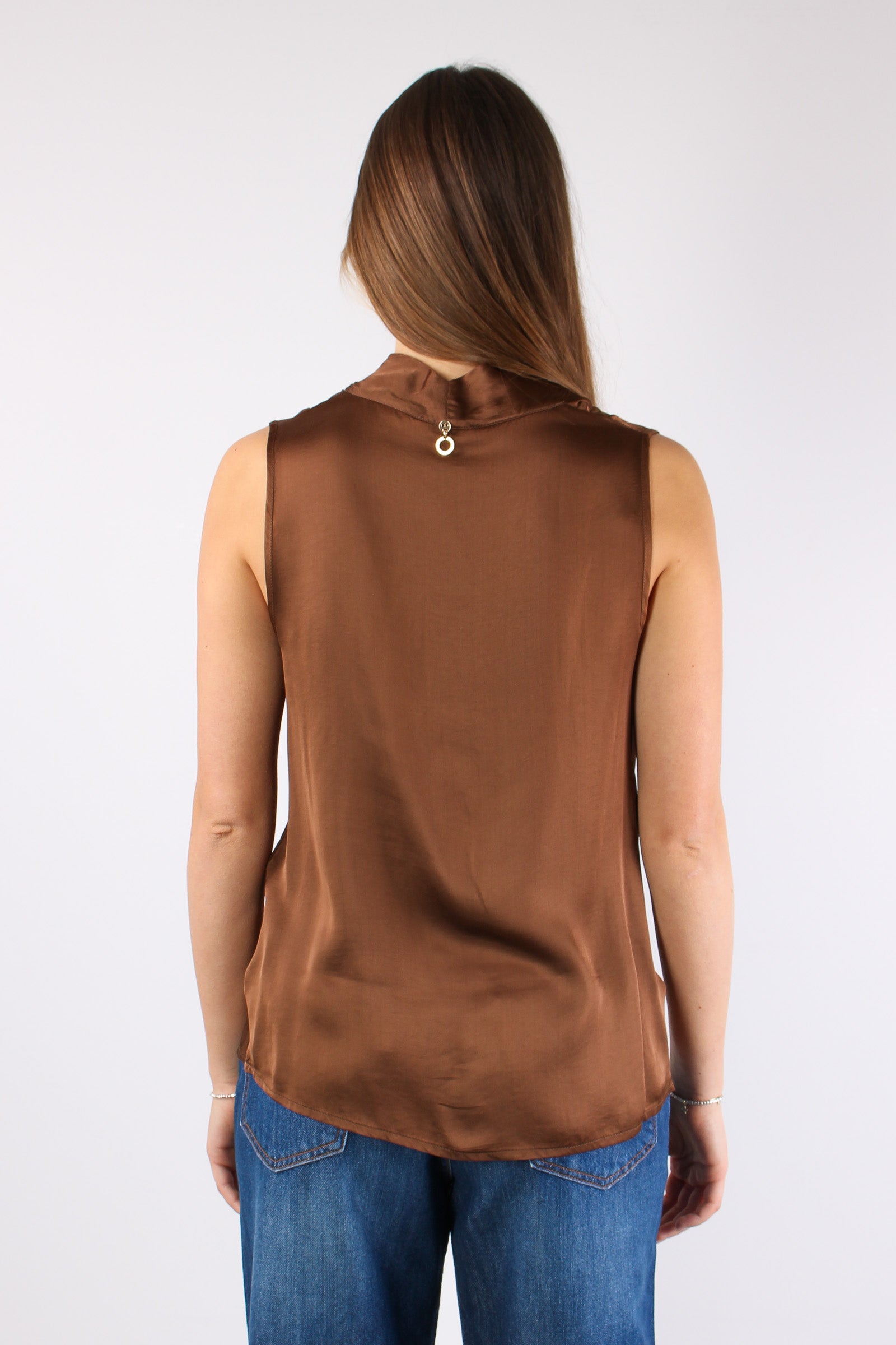 Wolfy Blusa Smanicata Effetto Raso Toffee