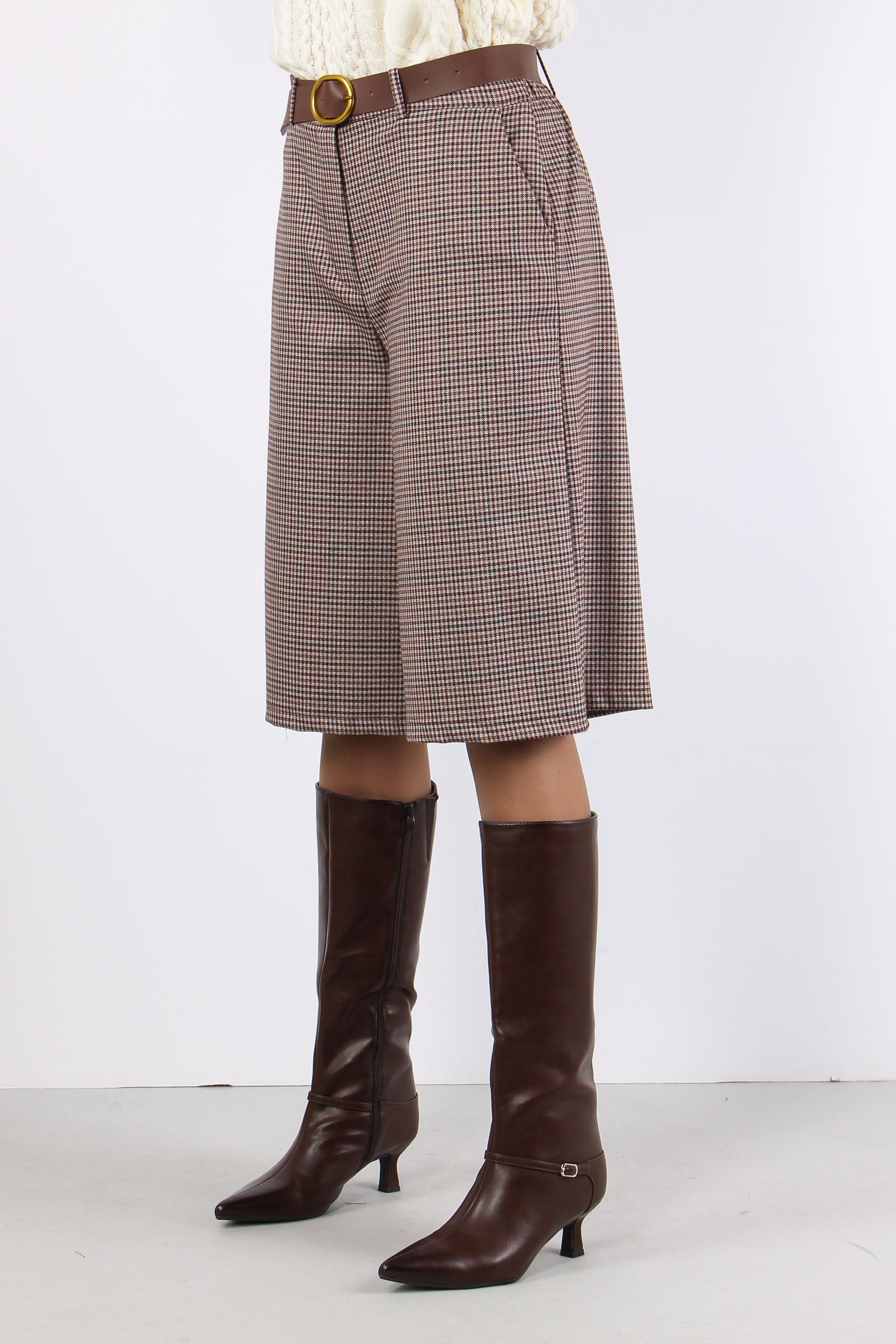 Bermuda Check Cintura Bordeaux/cammello