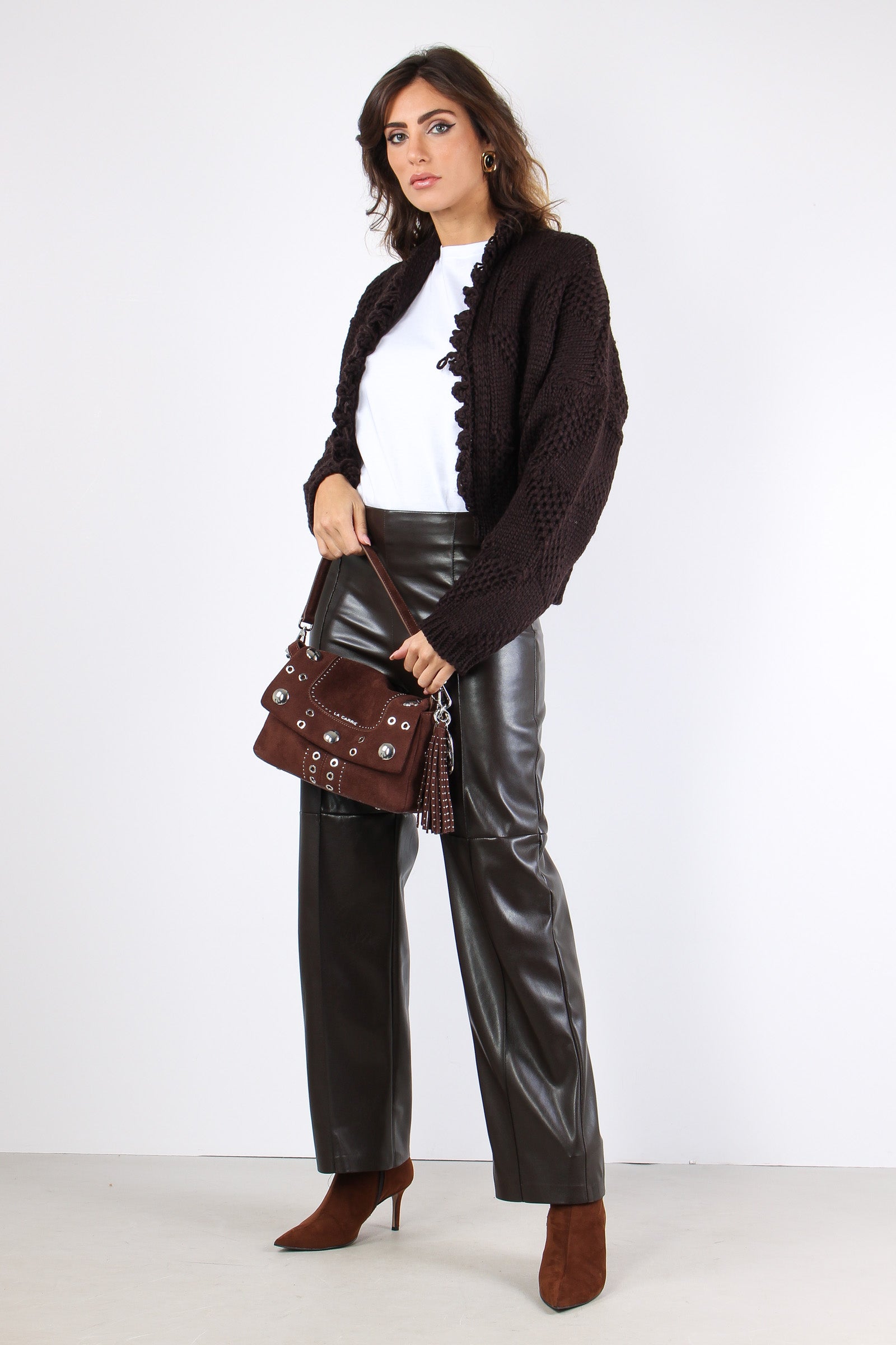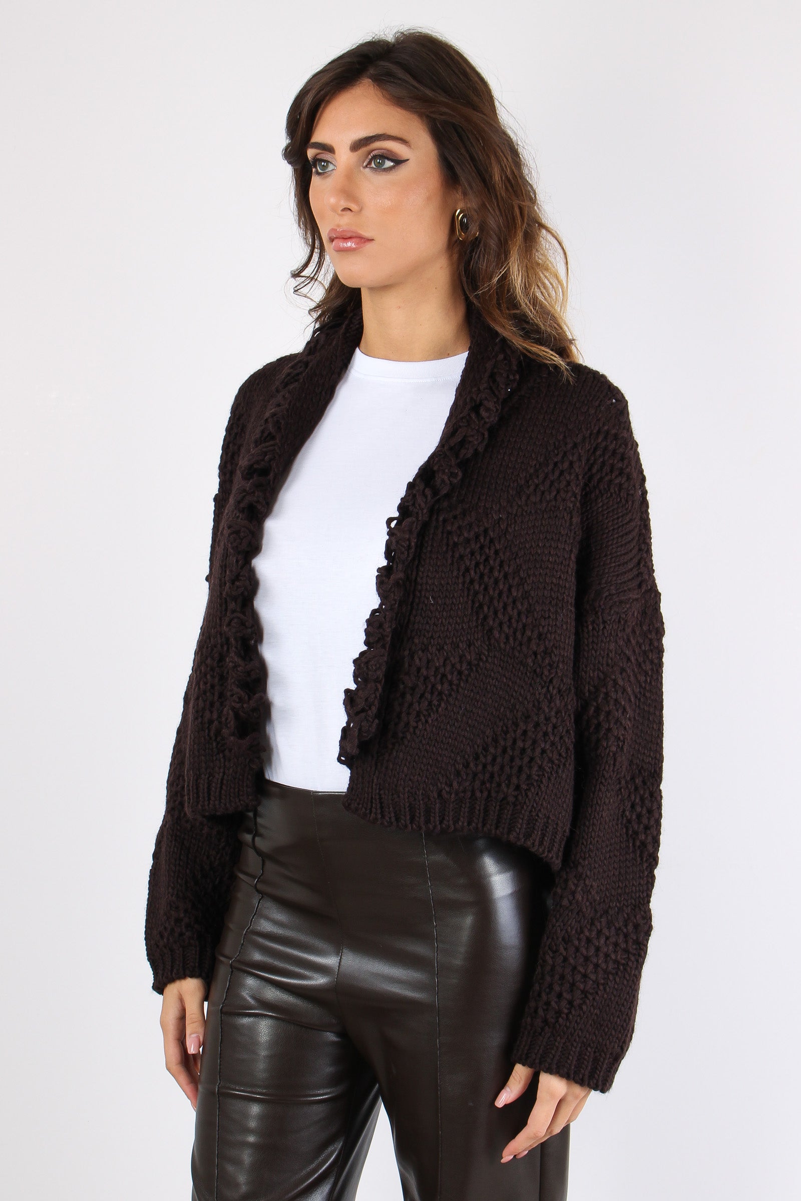 Cardigan Corto Effetto Uncinet Moro