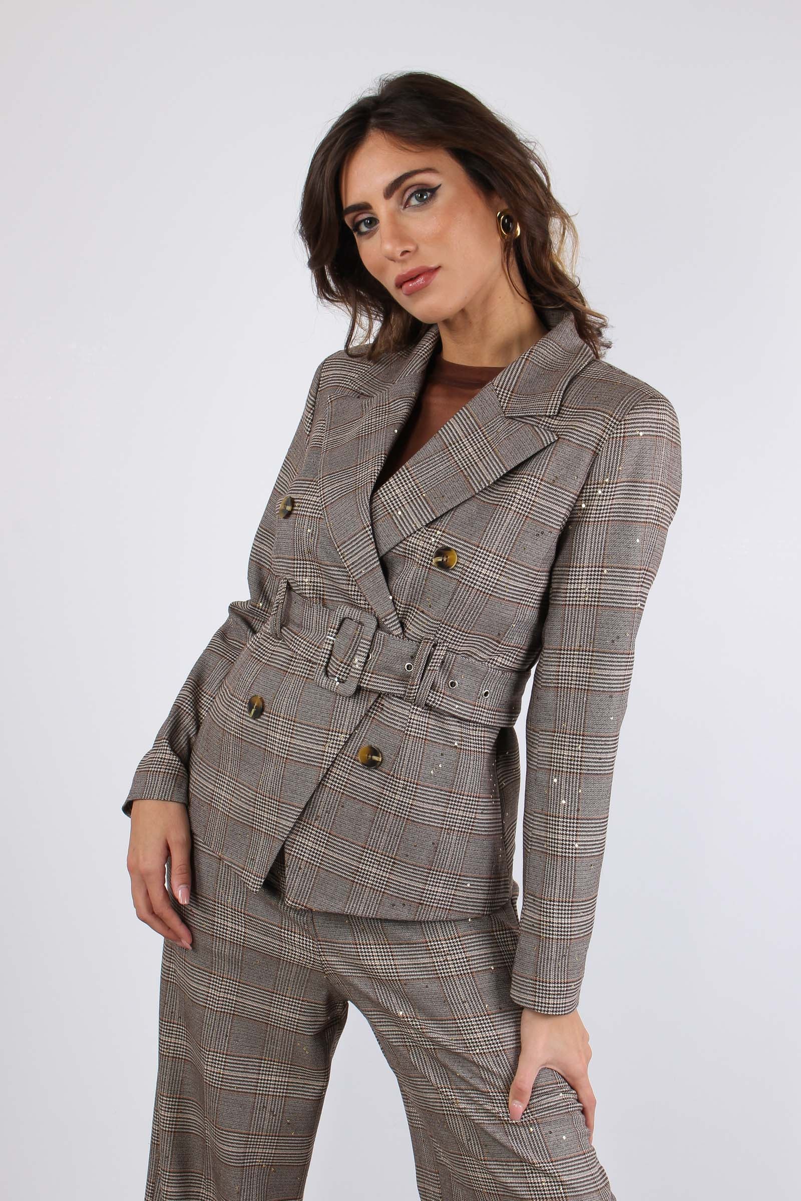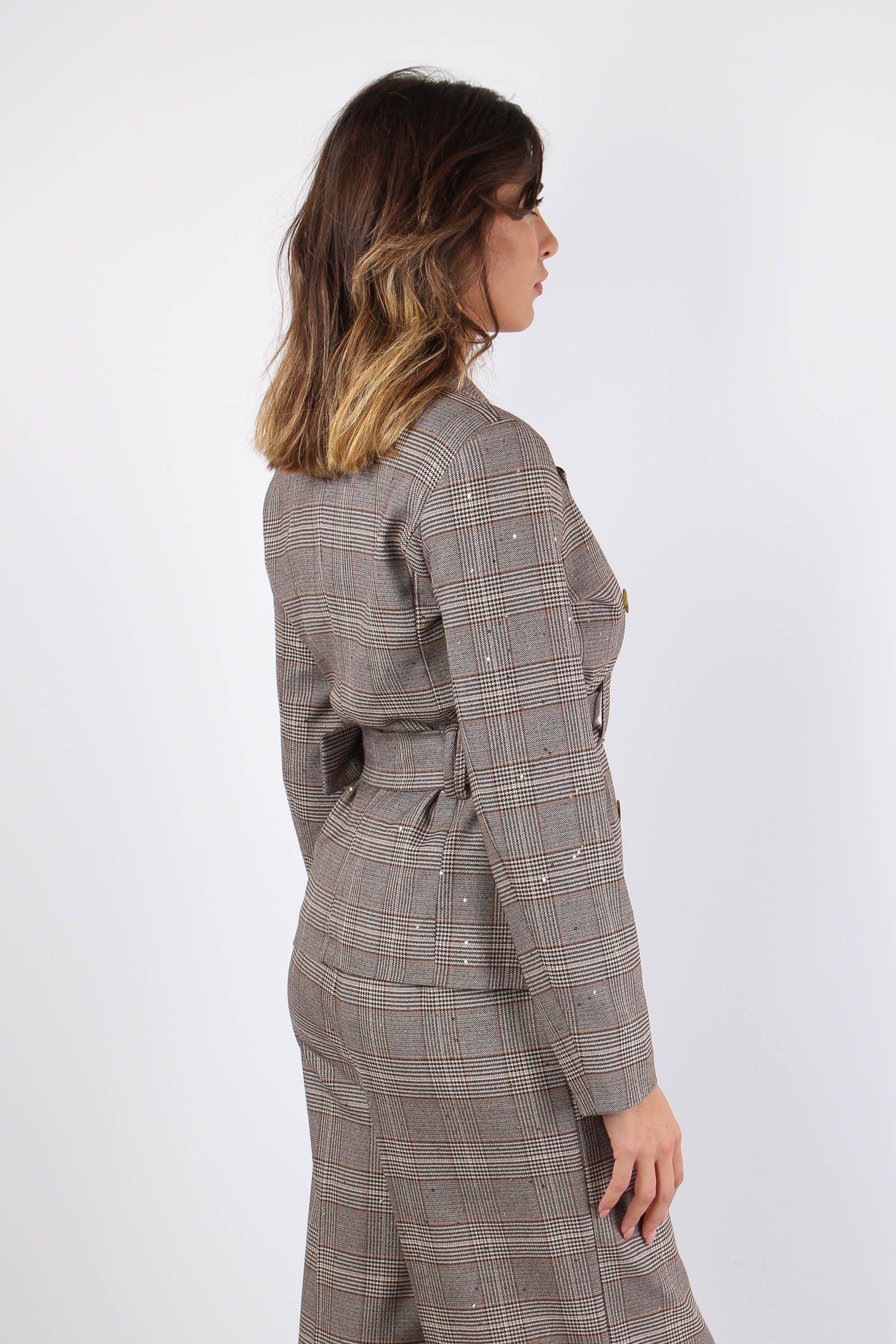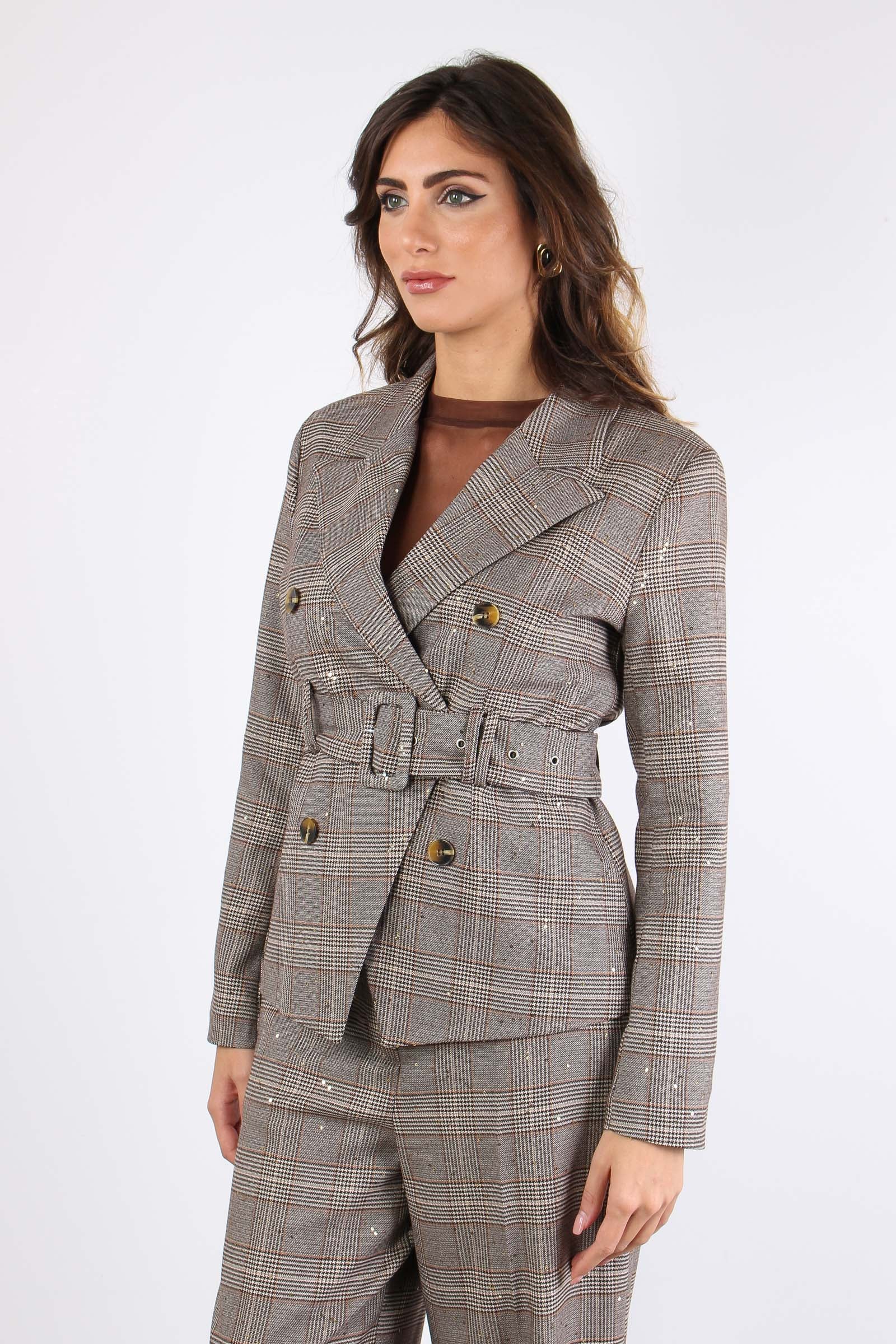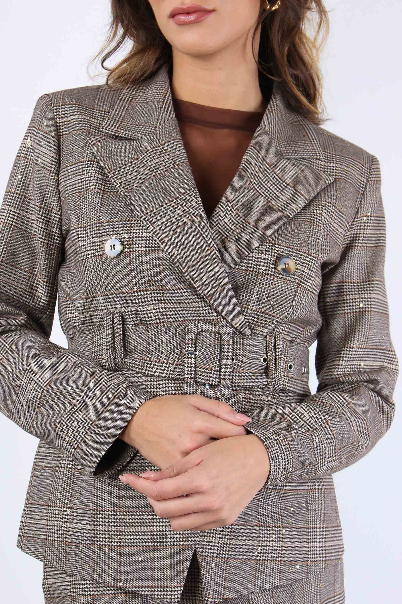 Giacca Cintura Galles Paillett Nocciola/moro