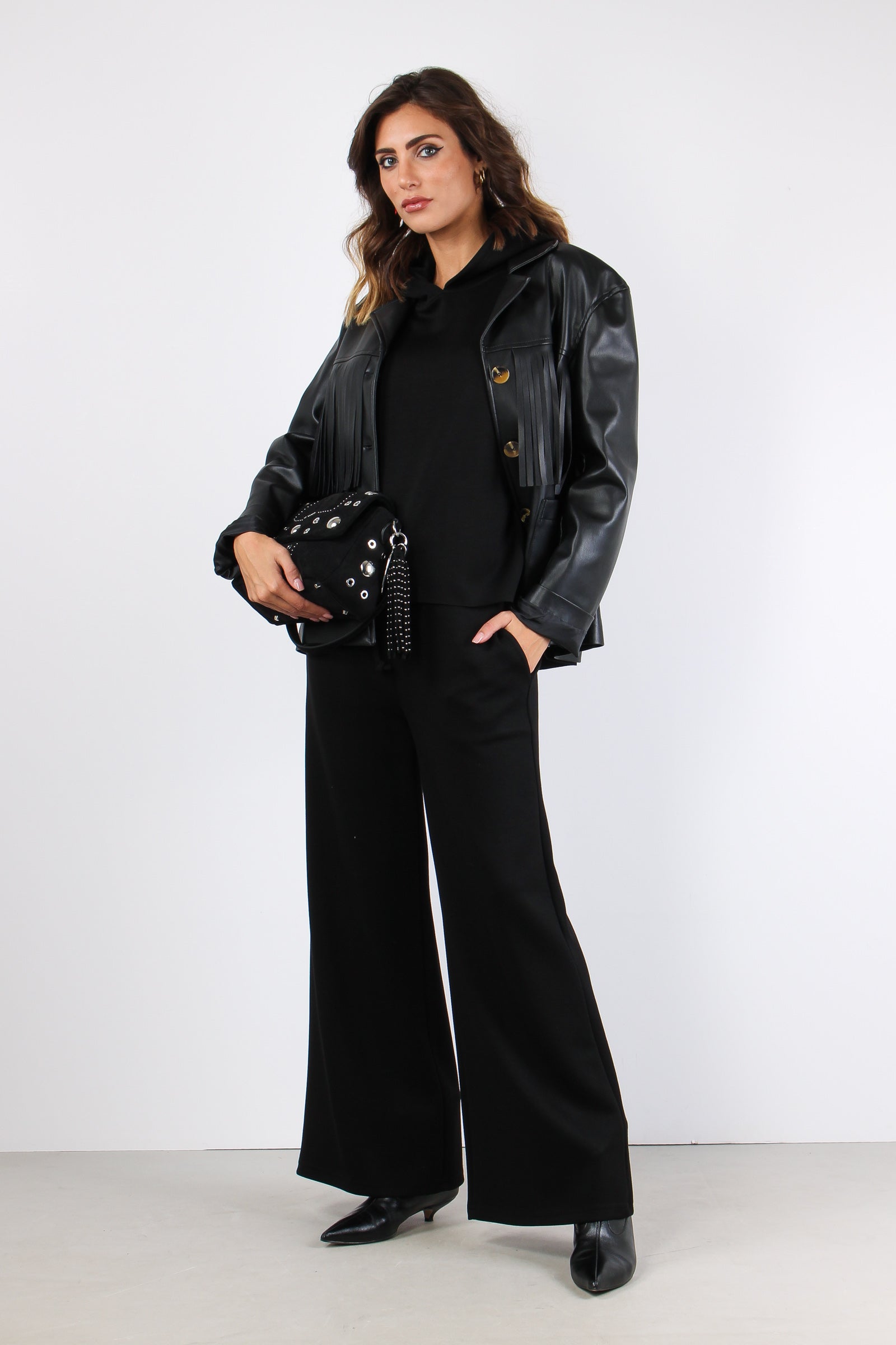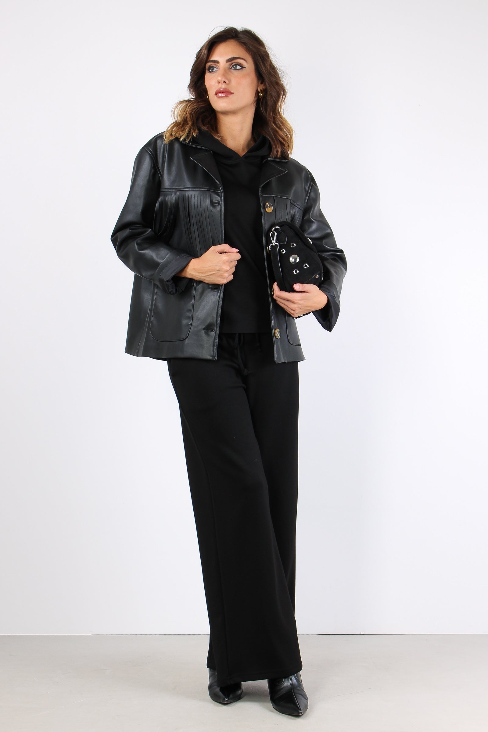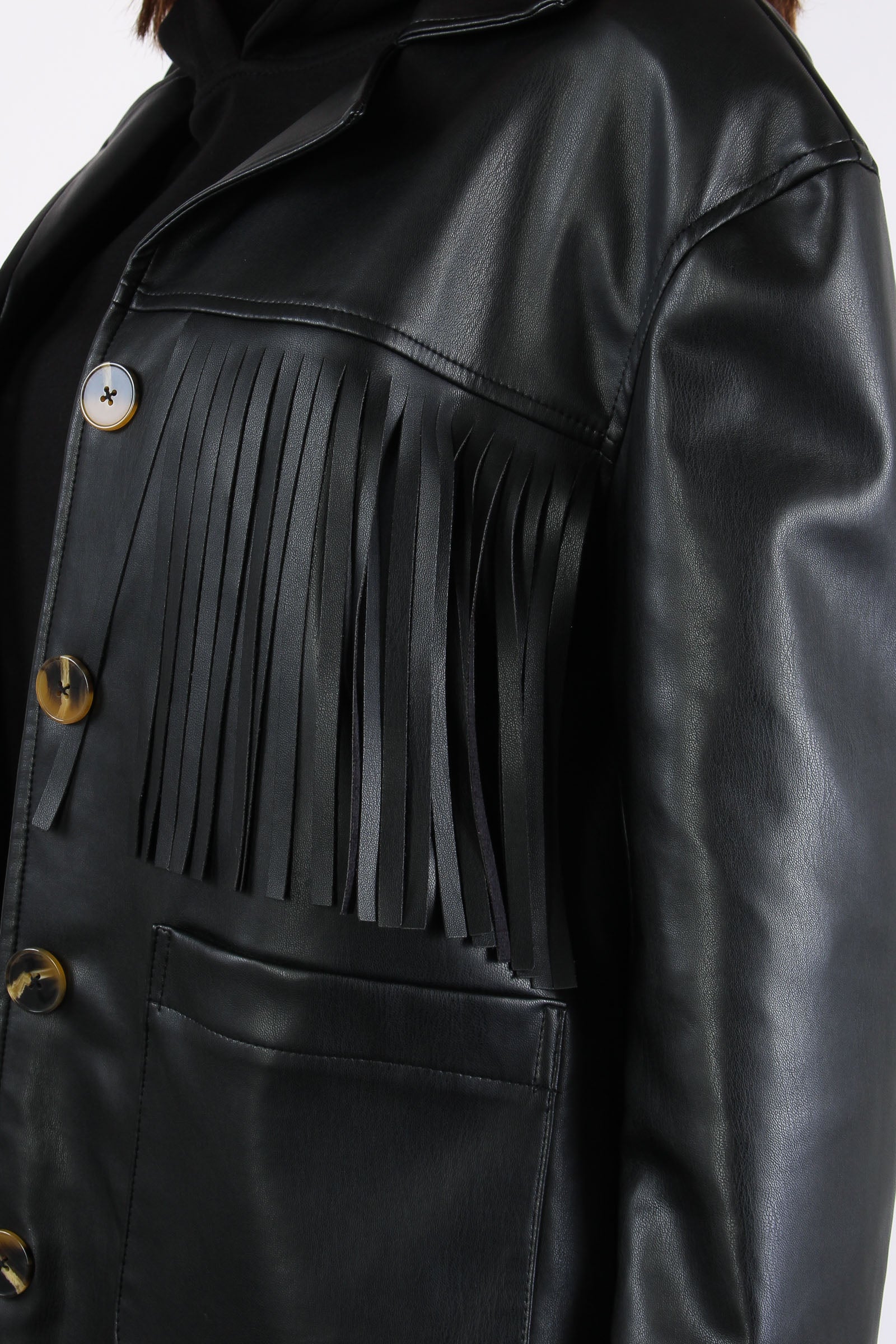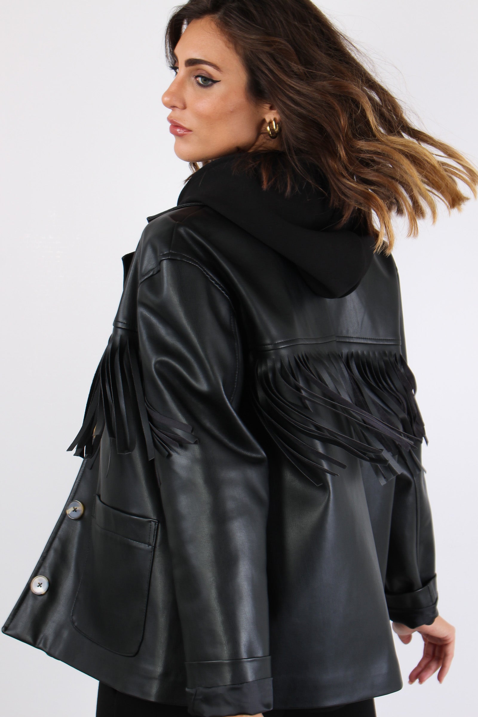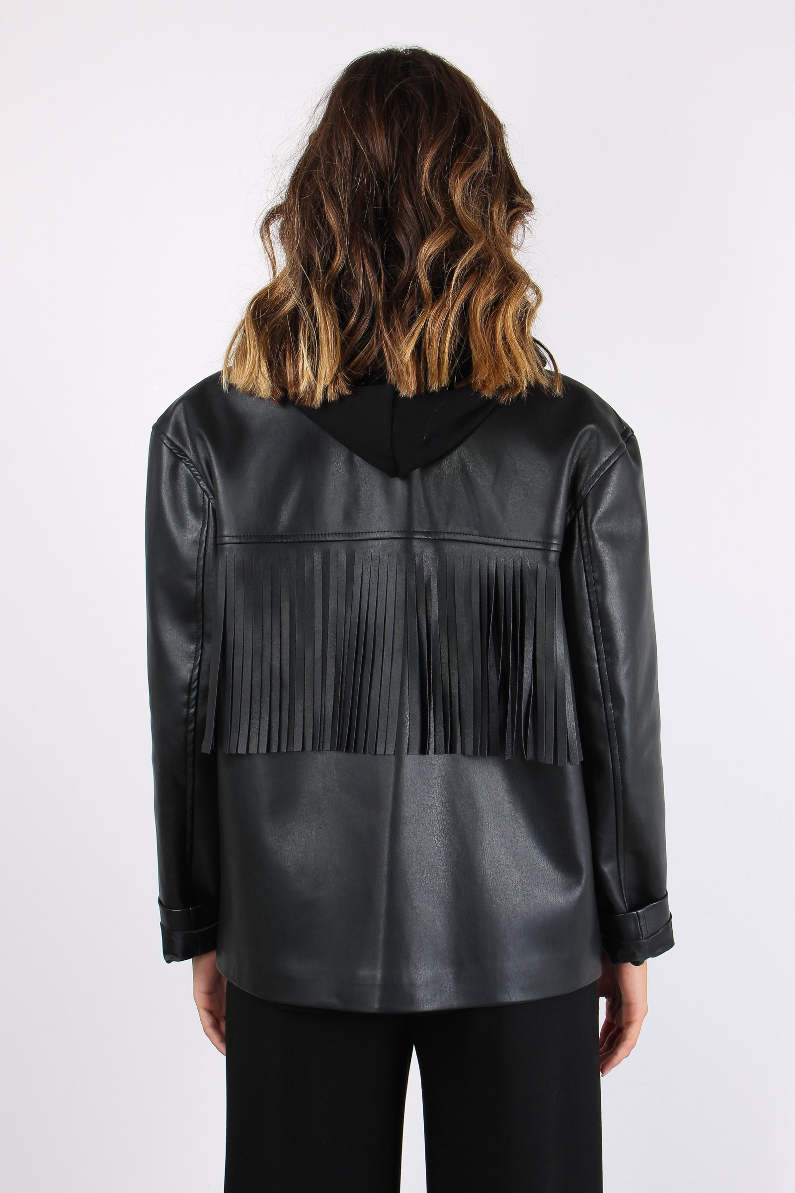 Giacca Ecopelle Frange Nero