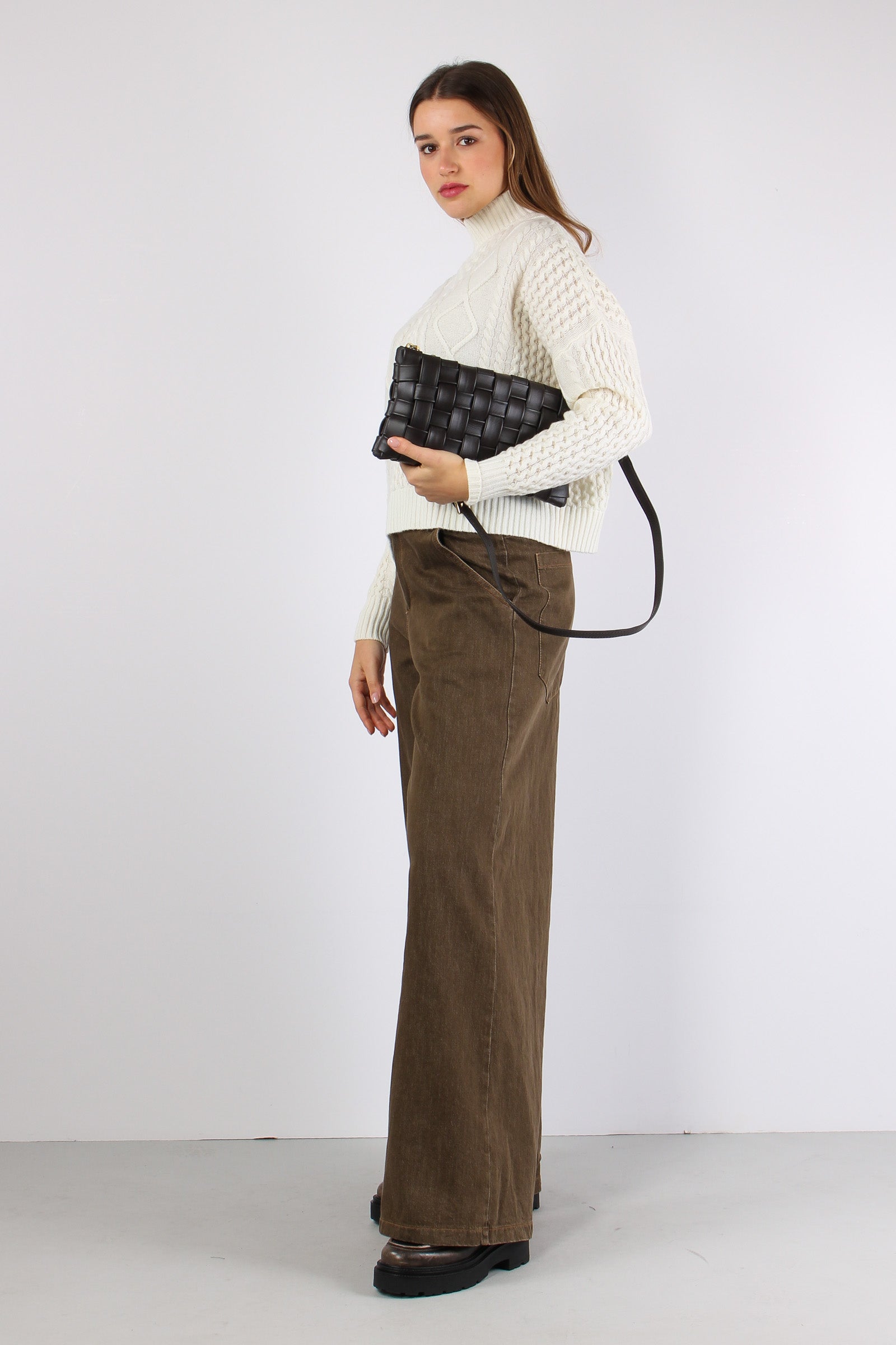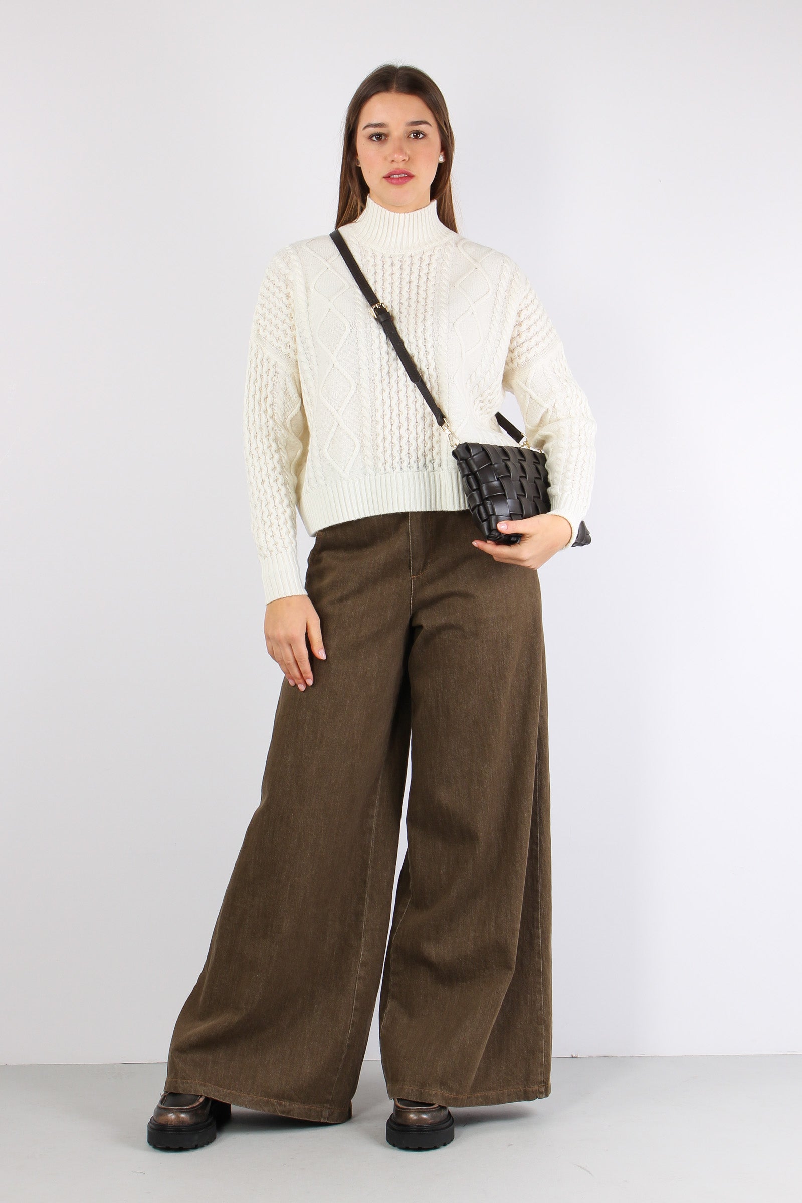 Maglia Collo Alto Treccia Panna