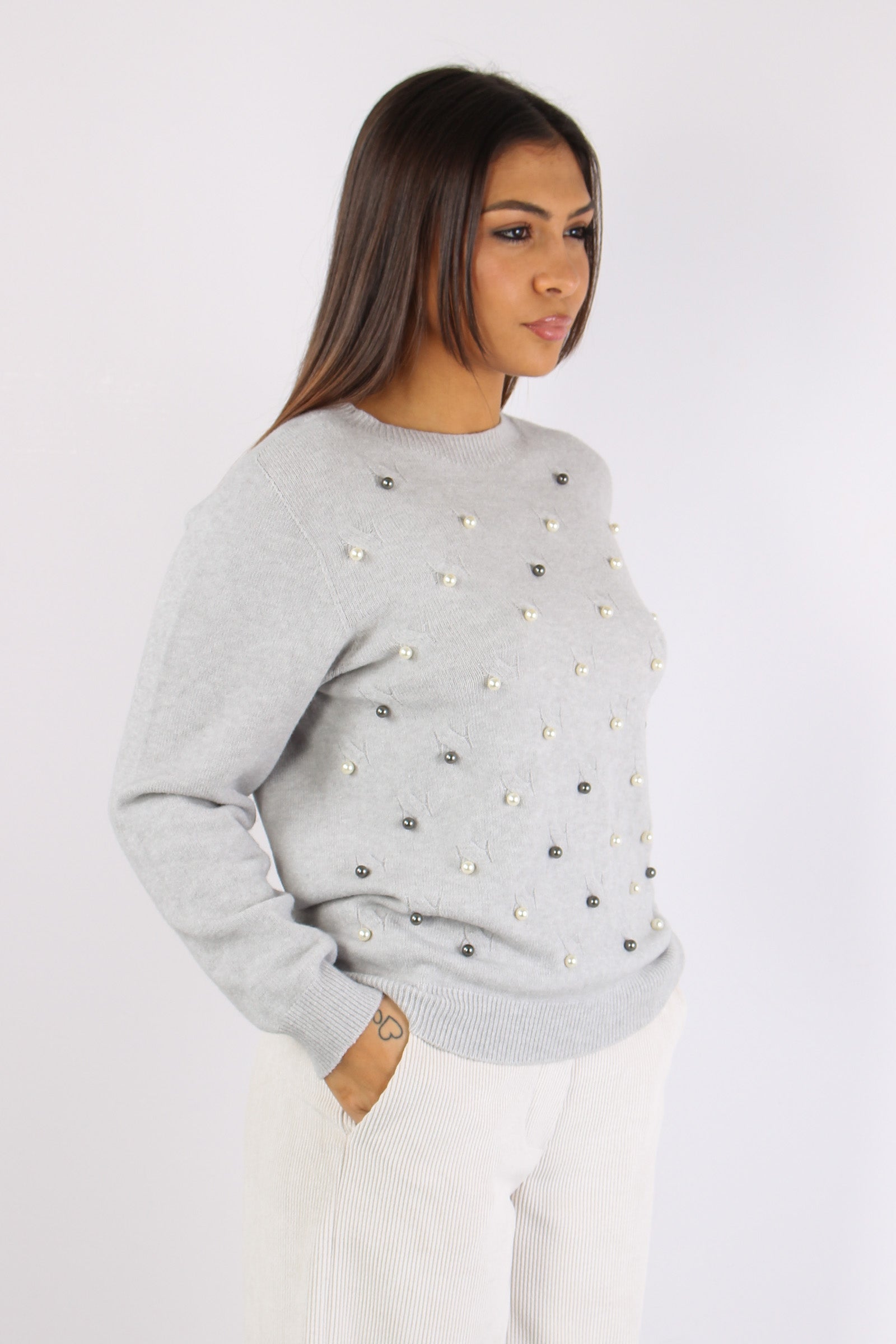 Maglia Inserto Perle Grigio