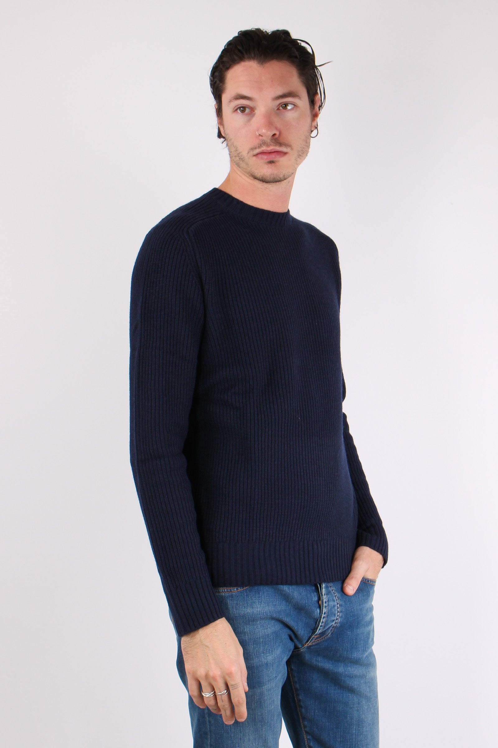 Maglia Giroccolo Misto Lana Poseidon Blue