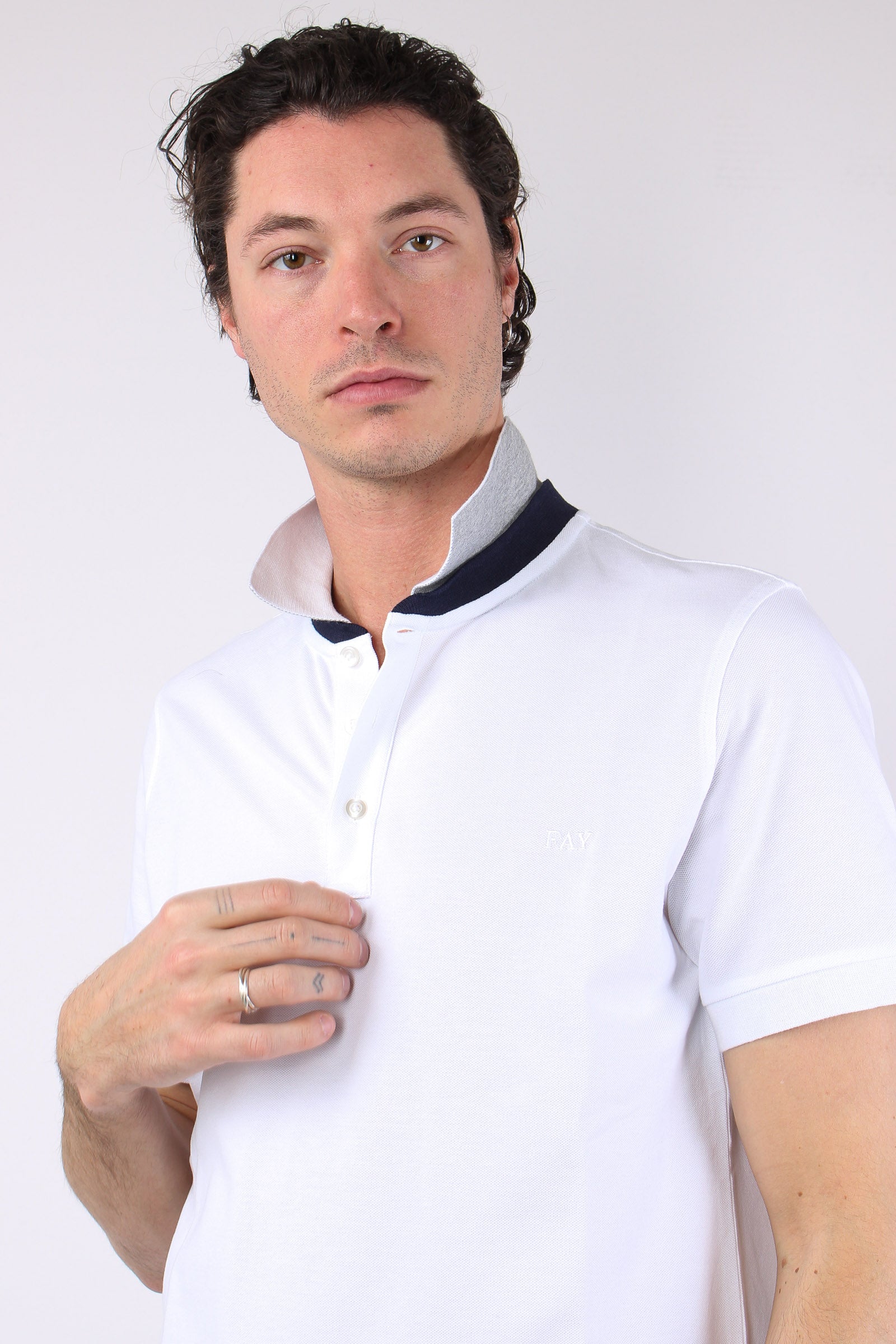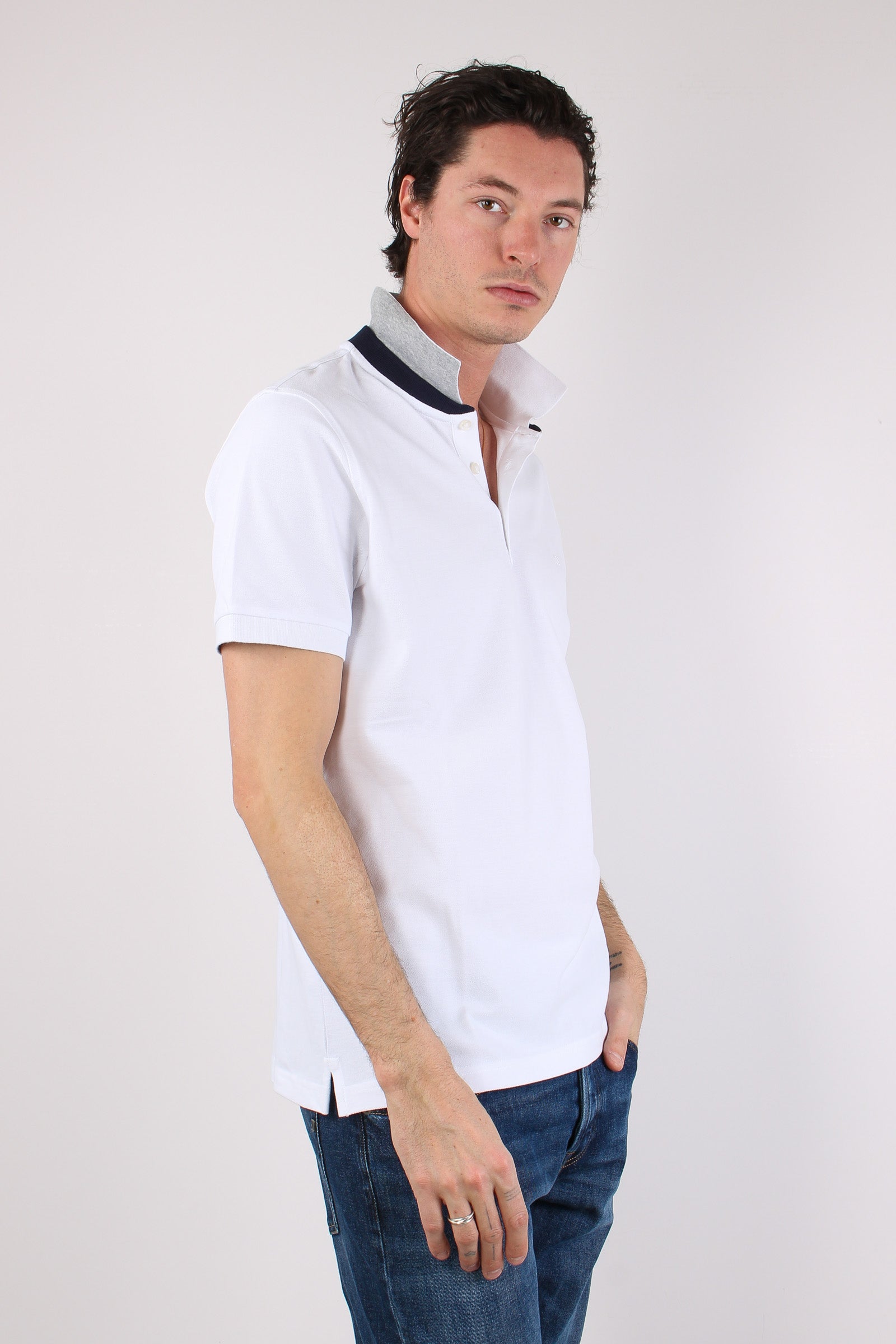 Polo Colletto Contrasto Bianco