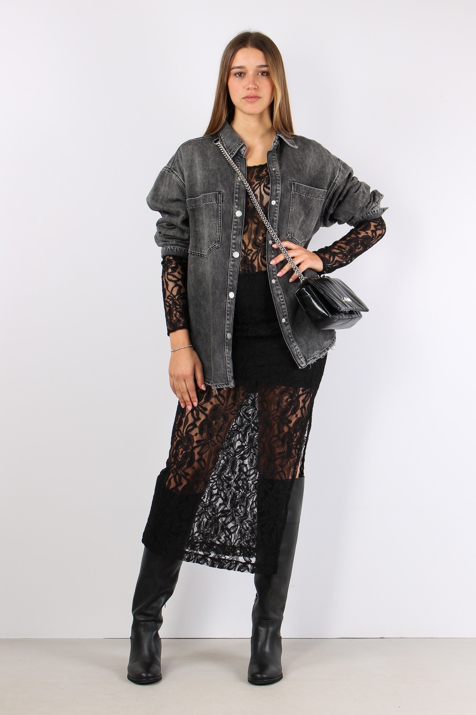 Camicia Over Denim Rotture Nero