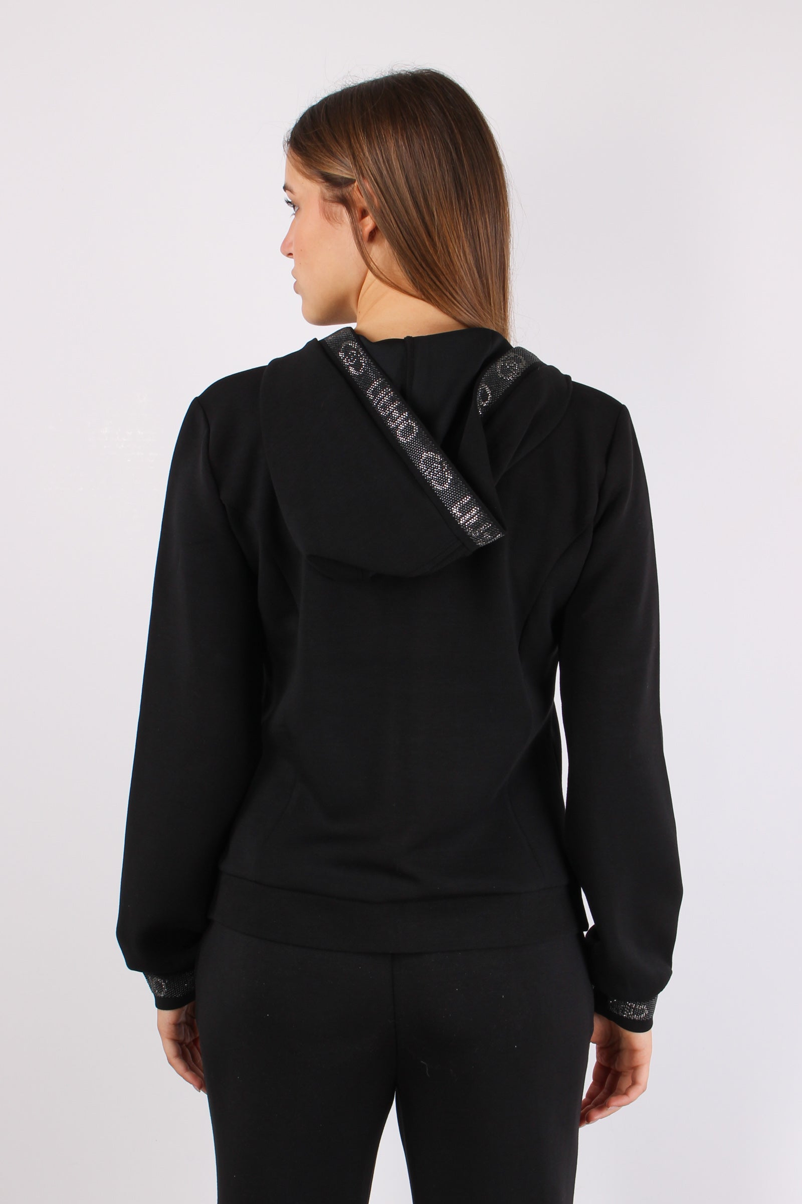 Felpa Zip Modal Scritta Lurex Nero
