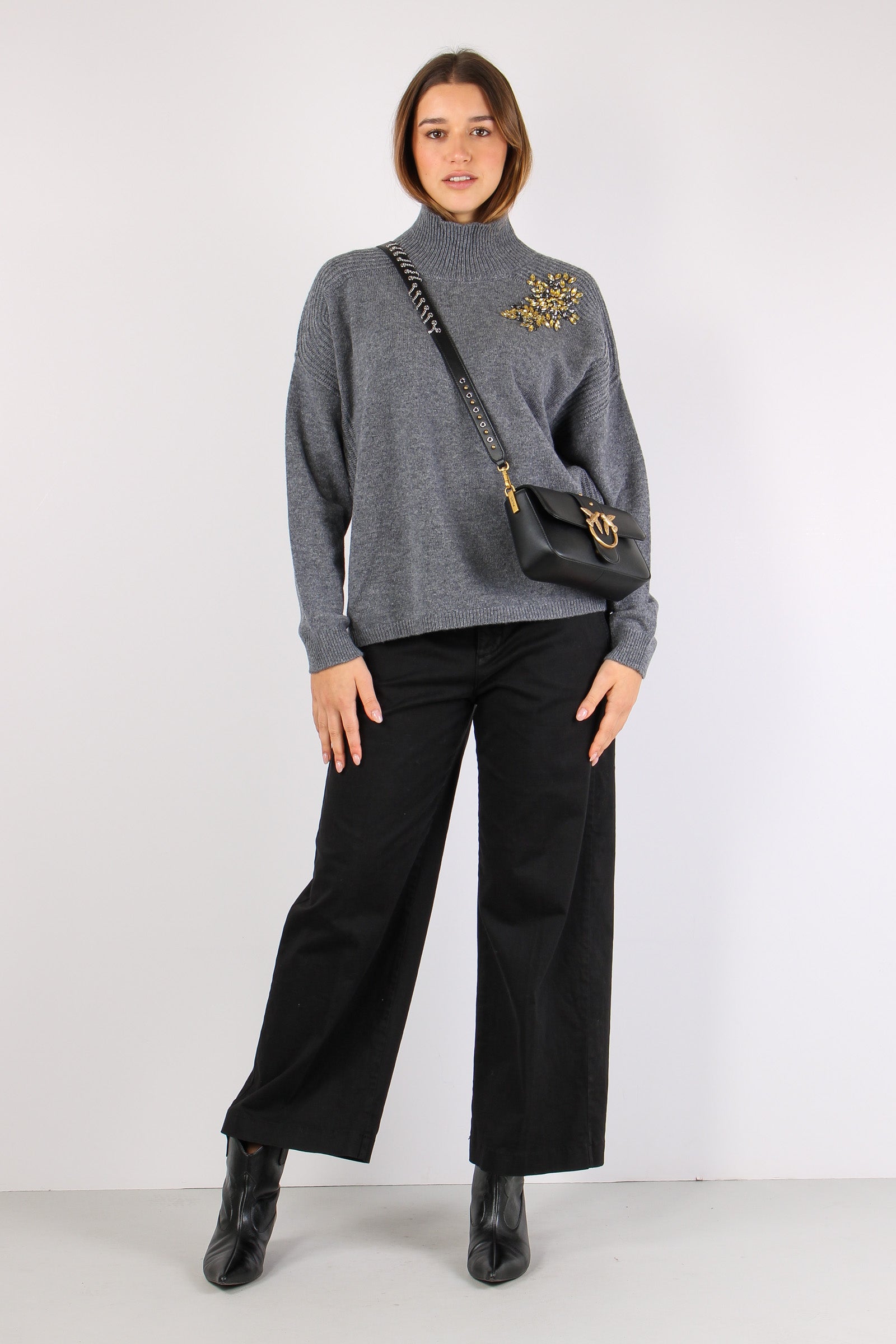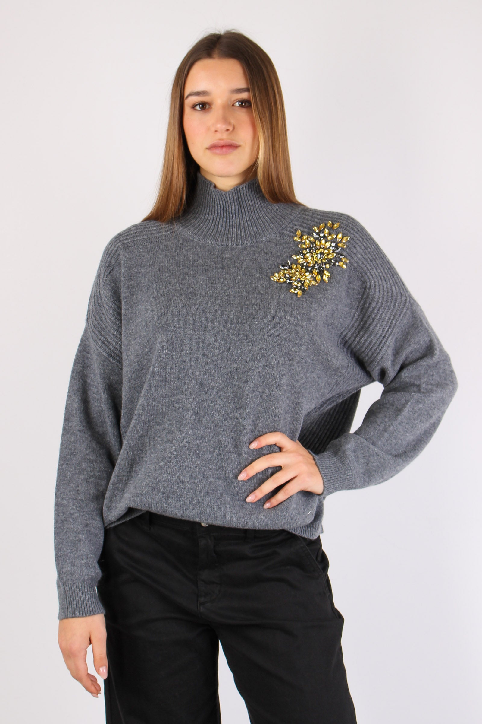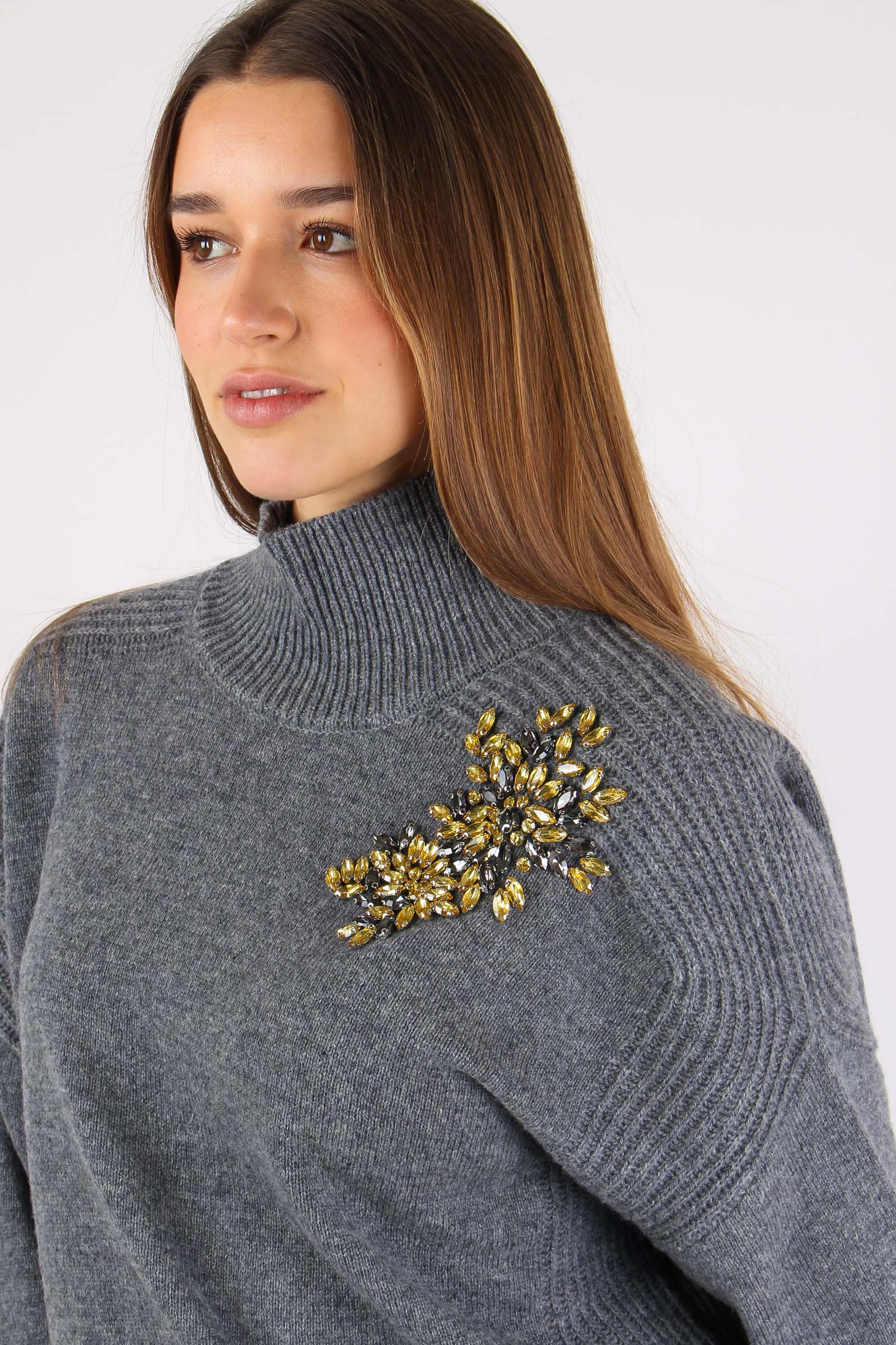 Maglia Collo Alto Applicazioni Grigio Melange