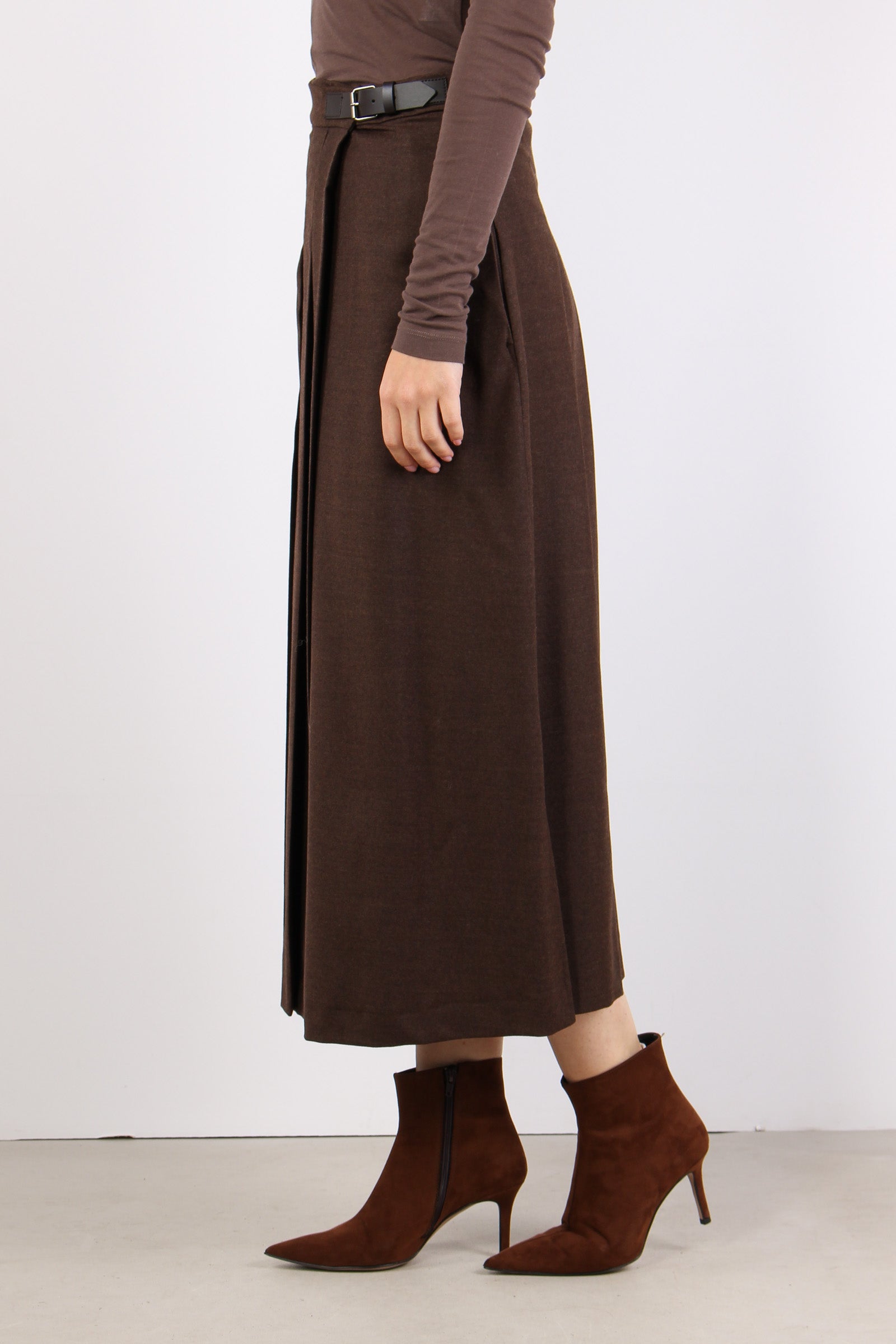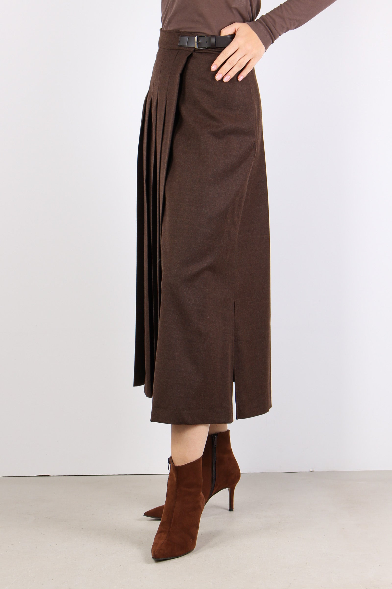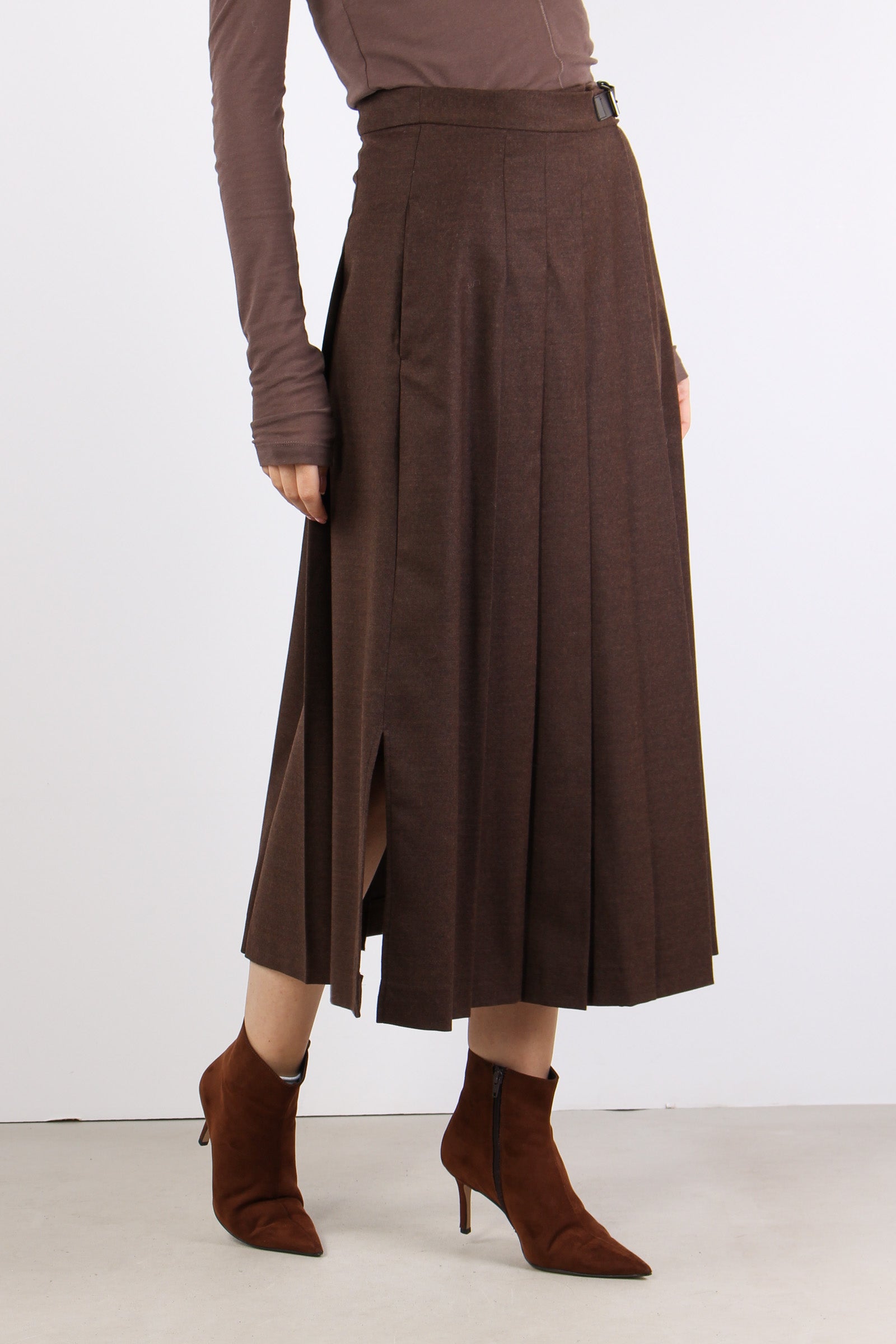Fastoso Gonna Pieghe Fibbia Cioccolato