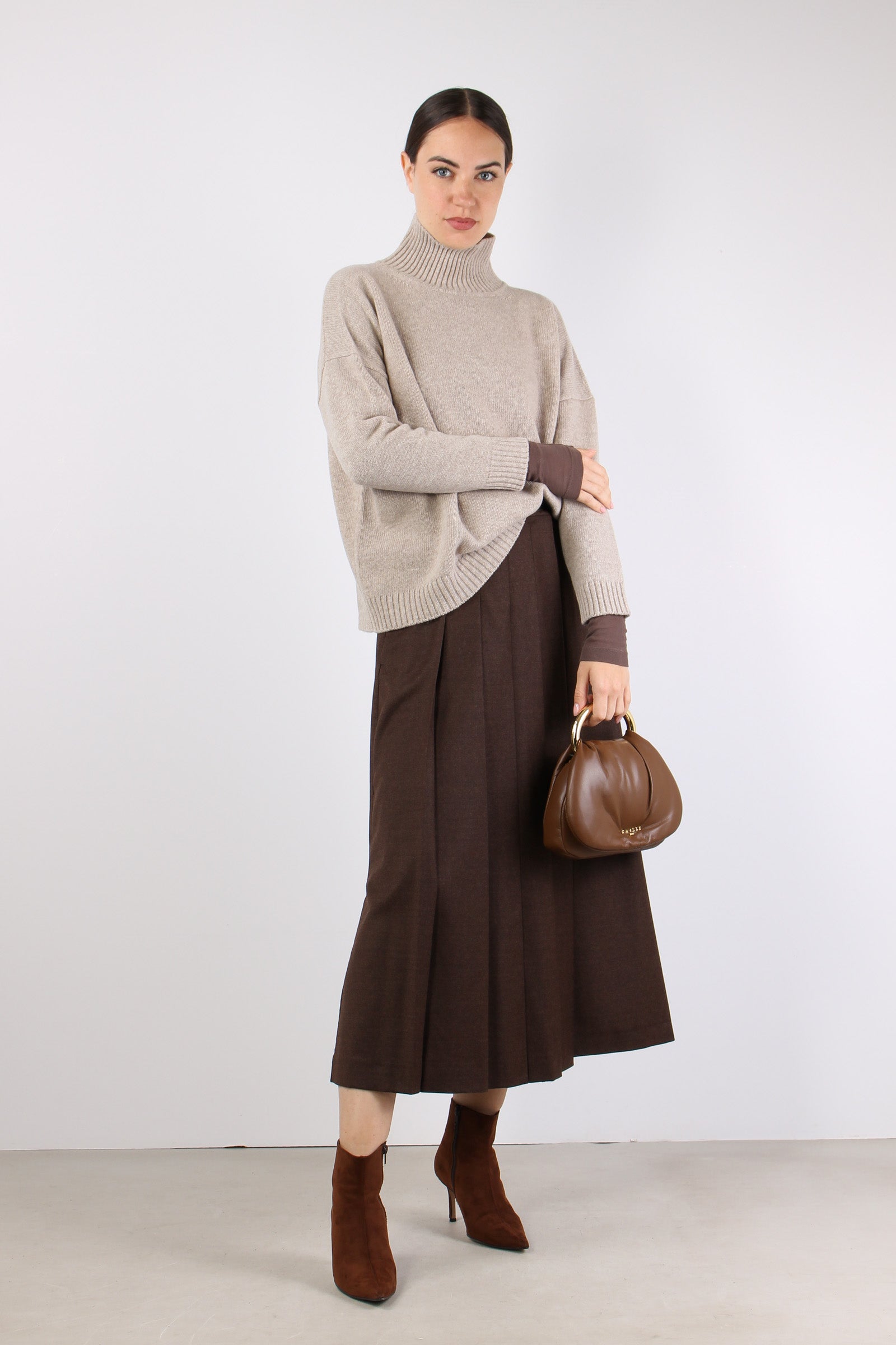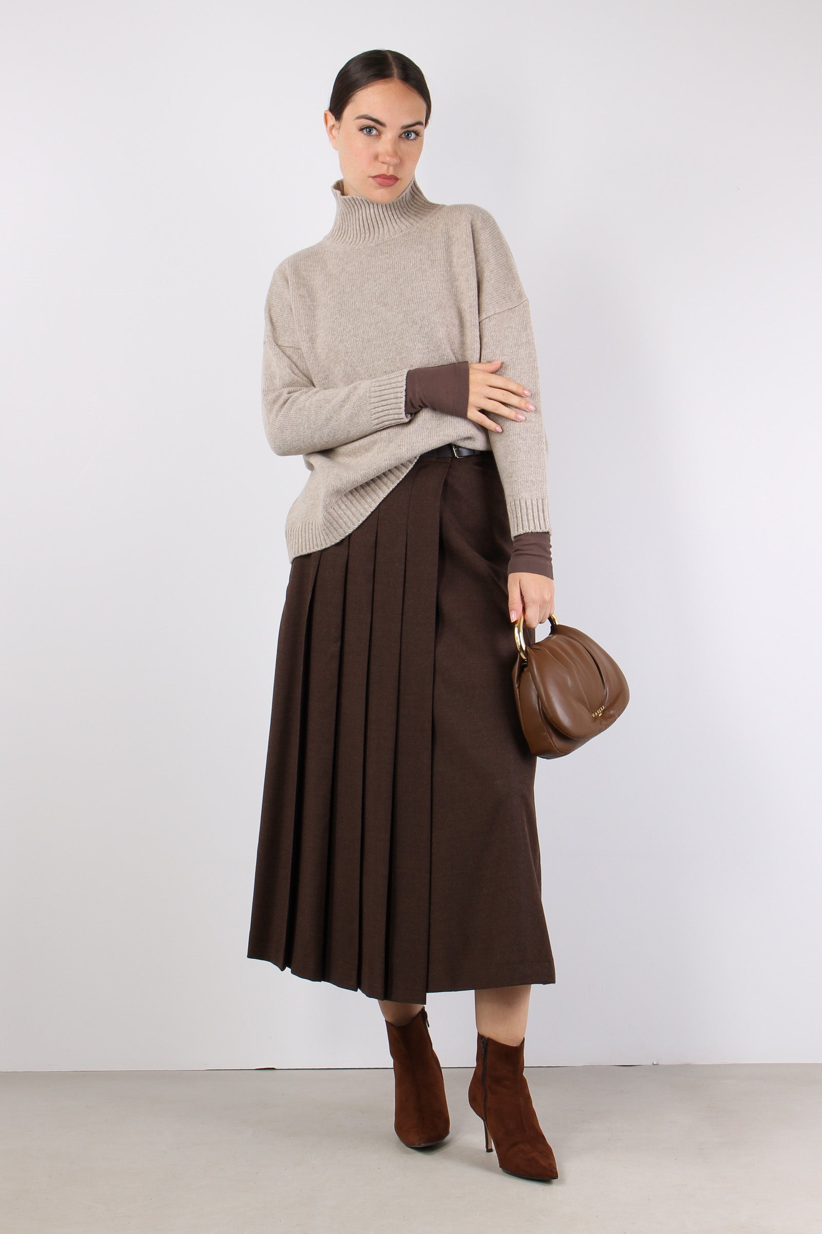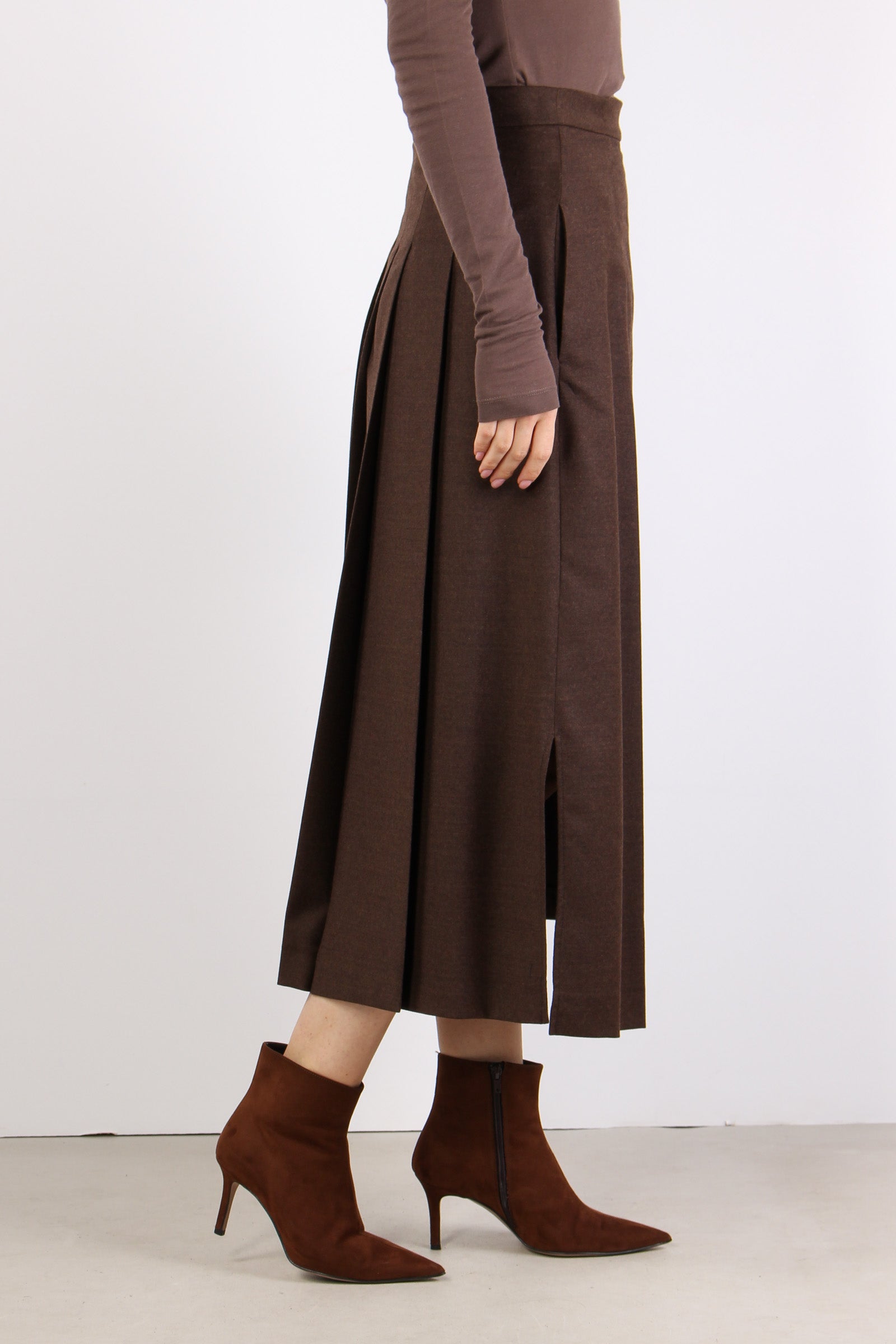 Fastoso Gonna Pieghe Fibbia Cioccolato