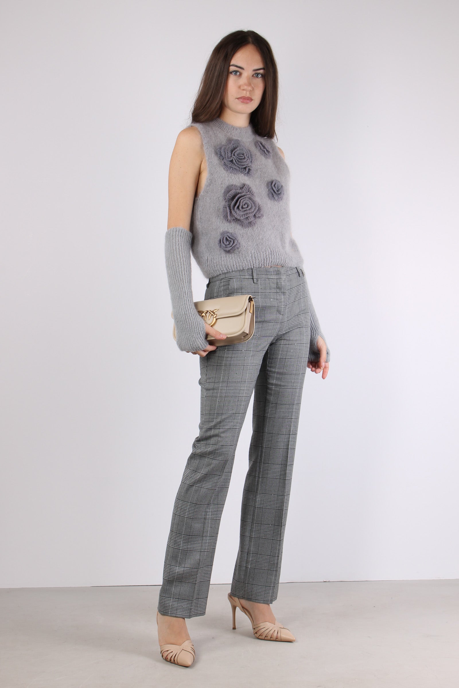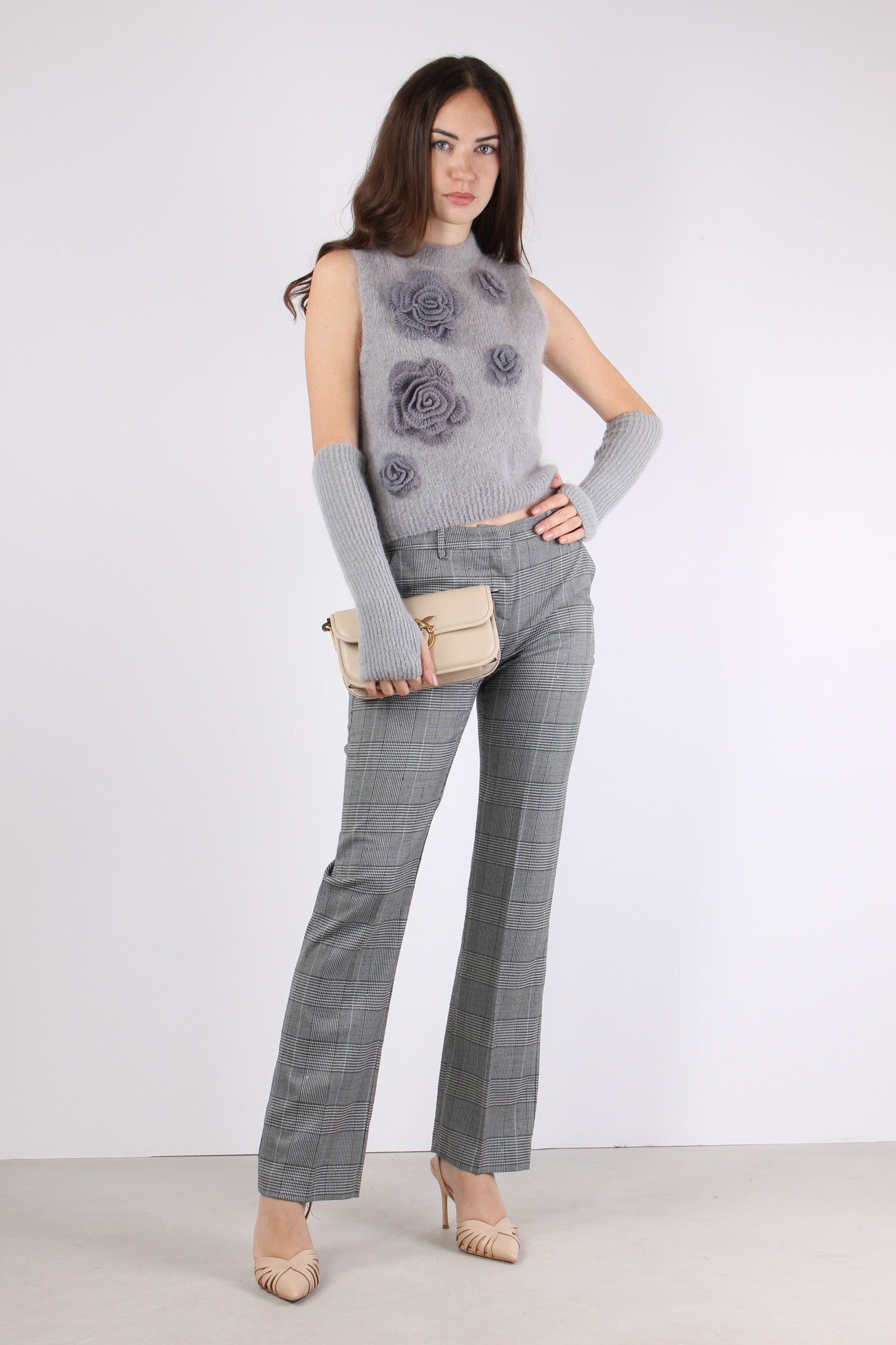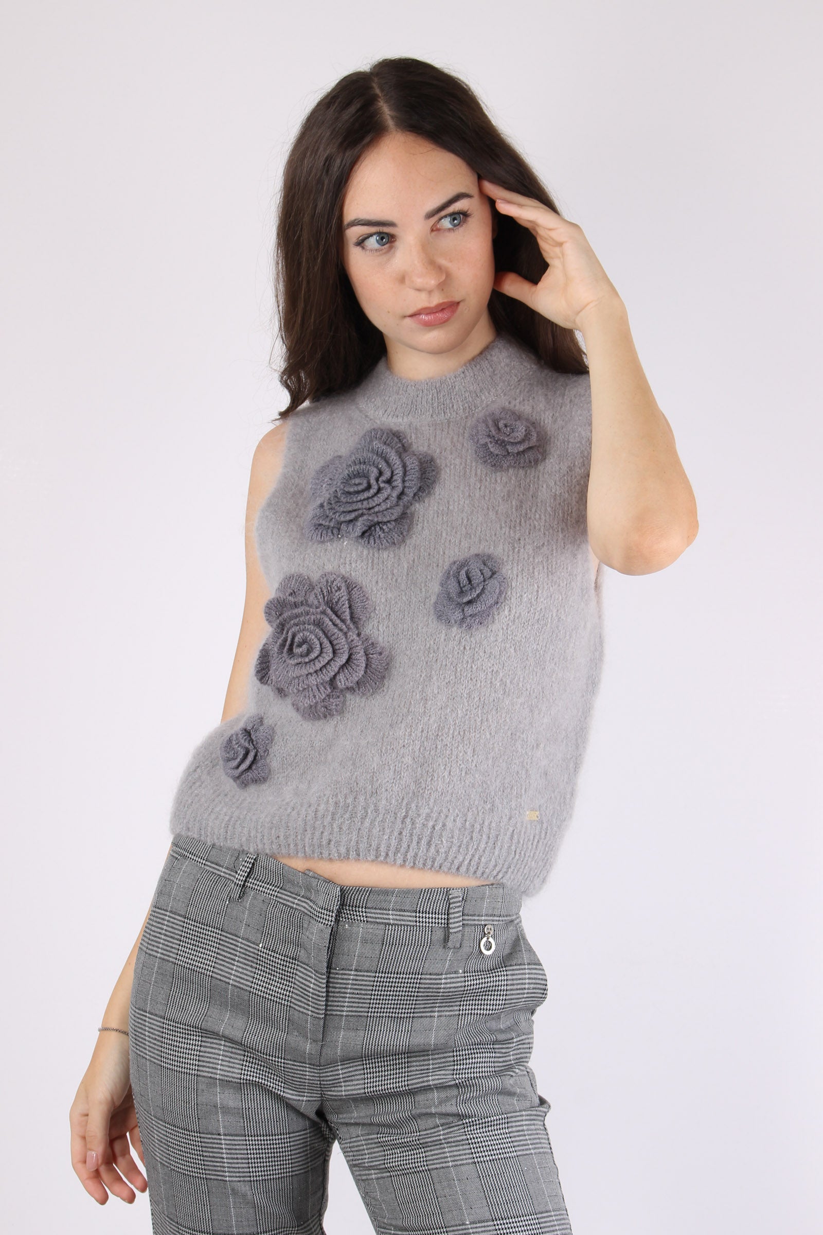 Gilet Maglia Applicazione Rose Ash
