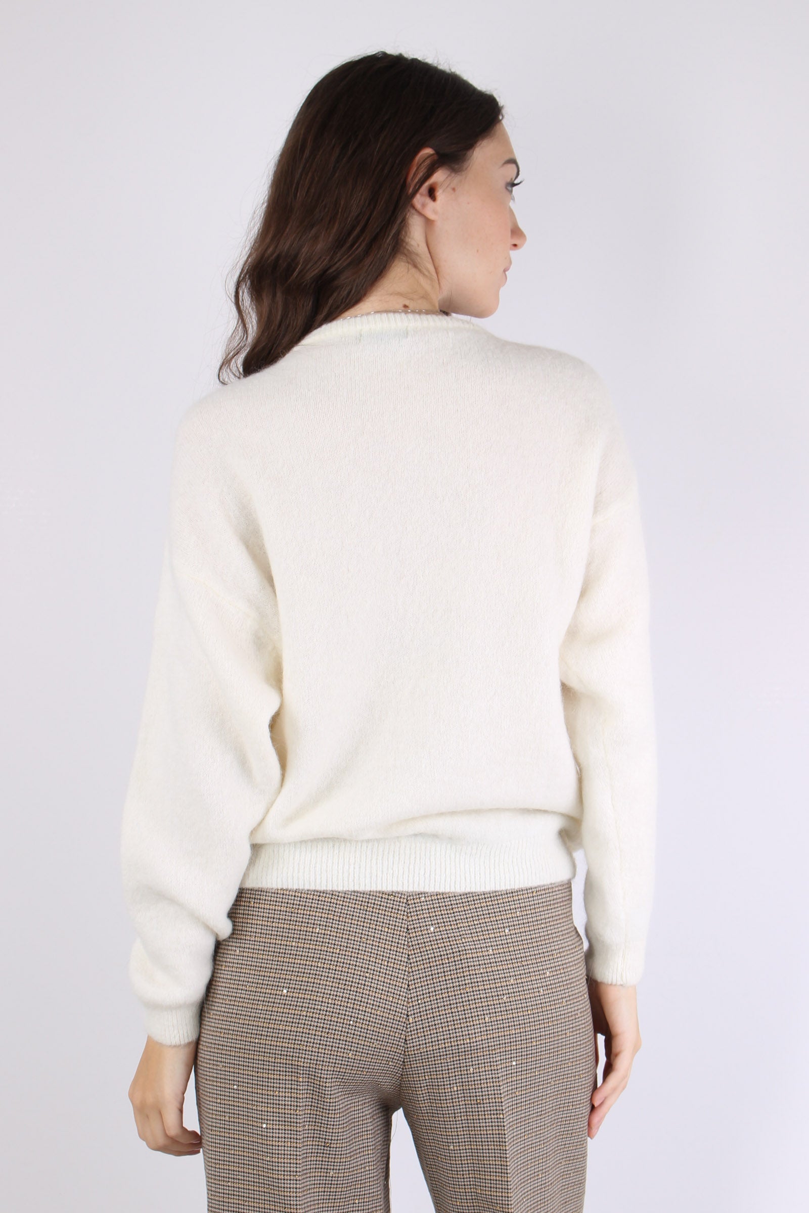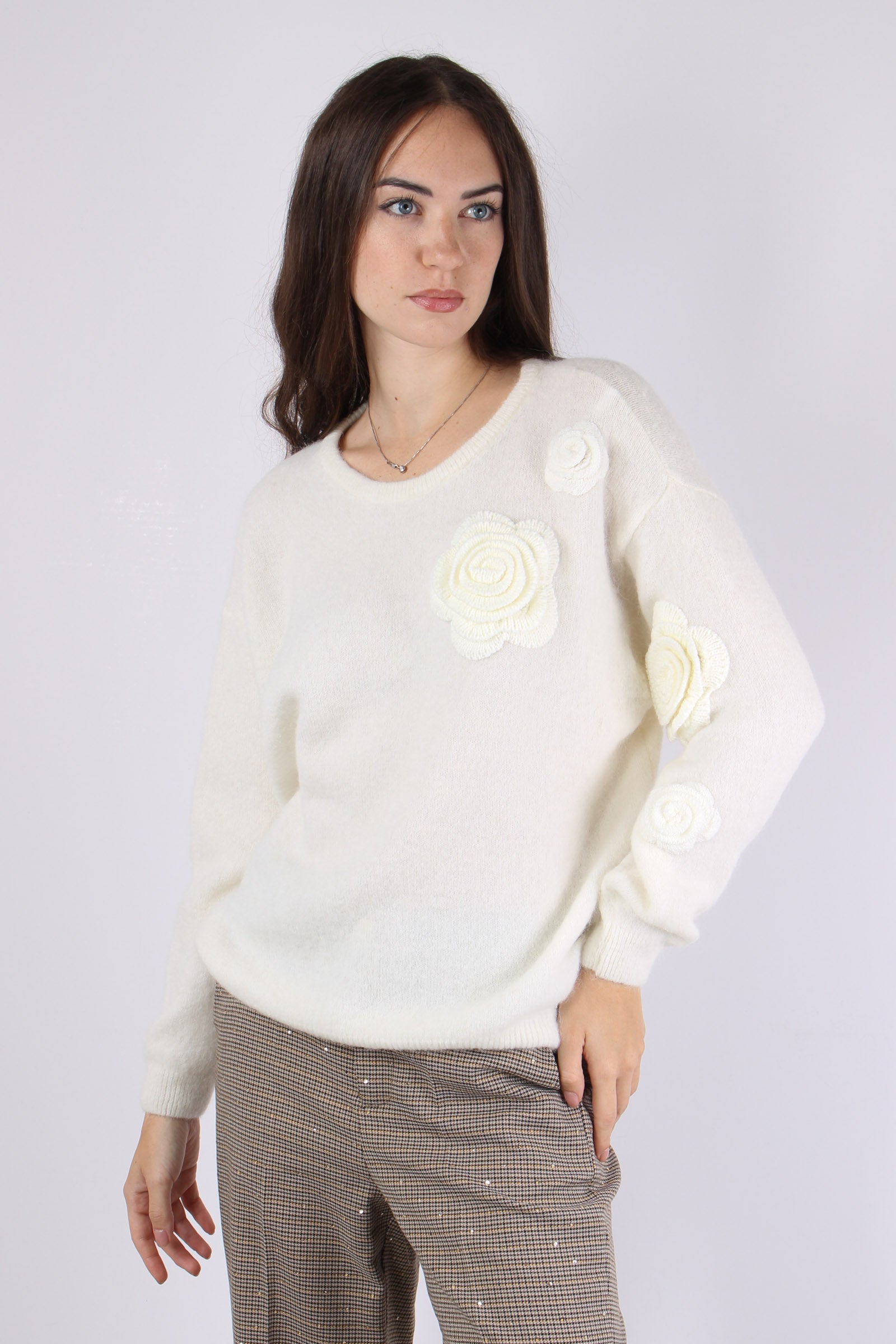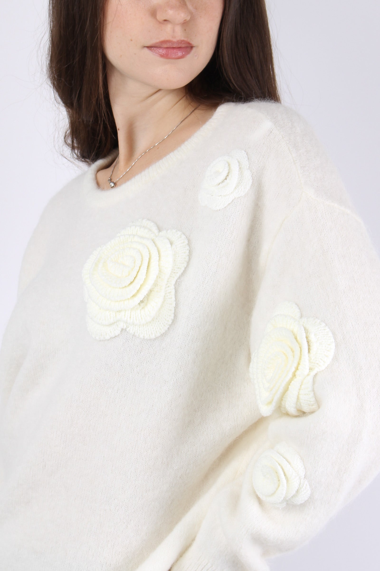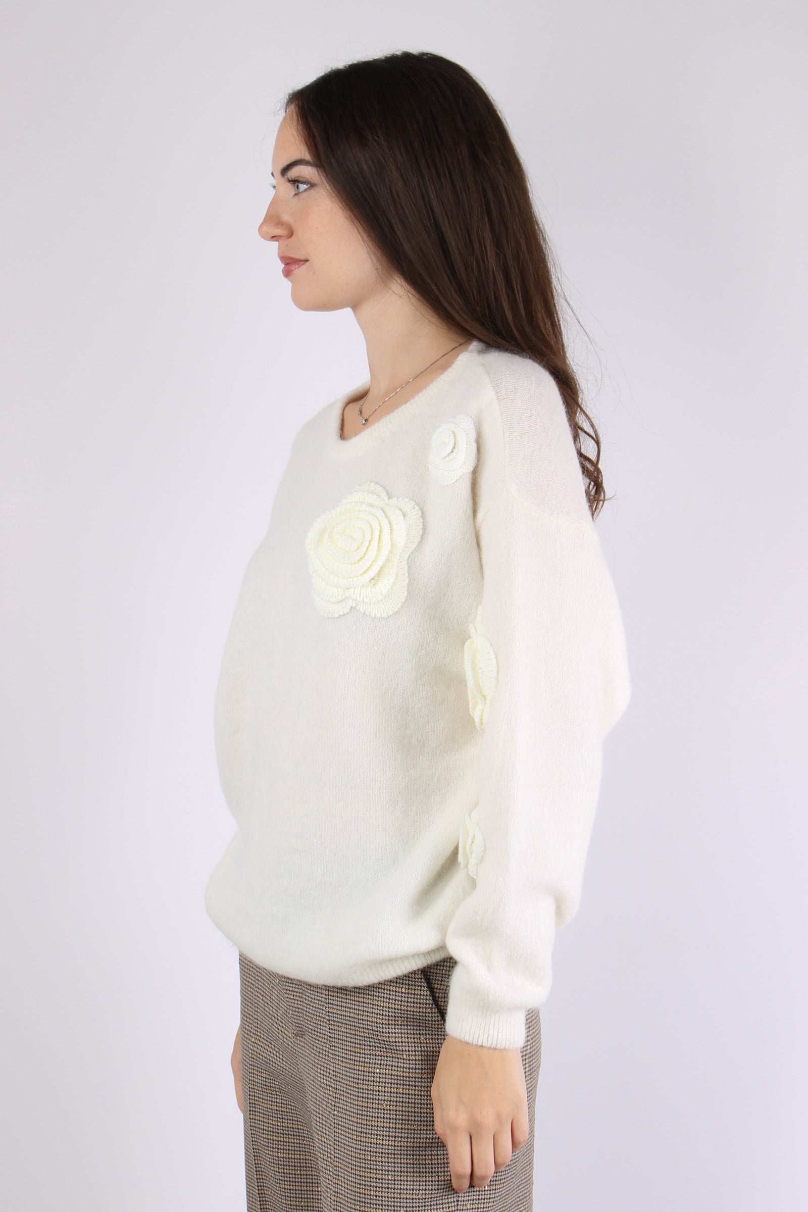 Maglia Over Applicazione Rose Natural