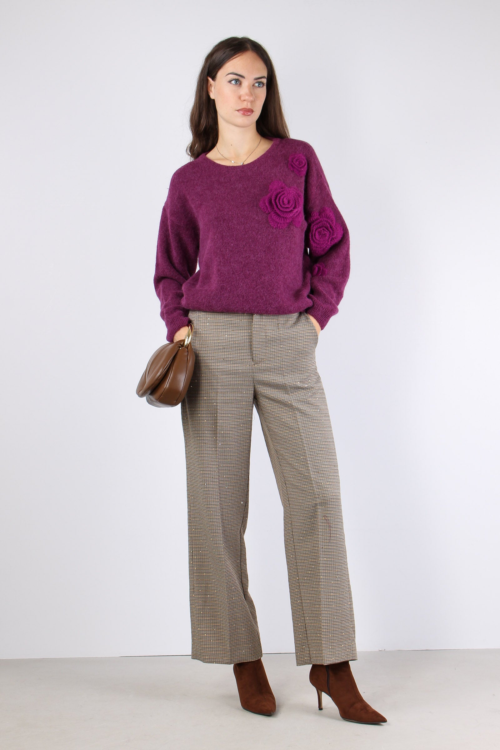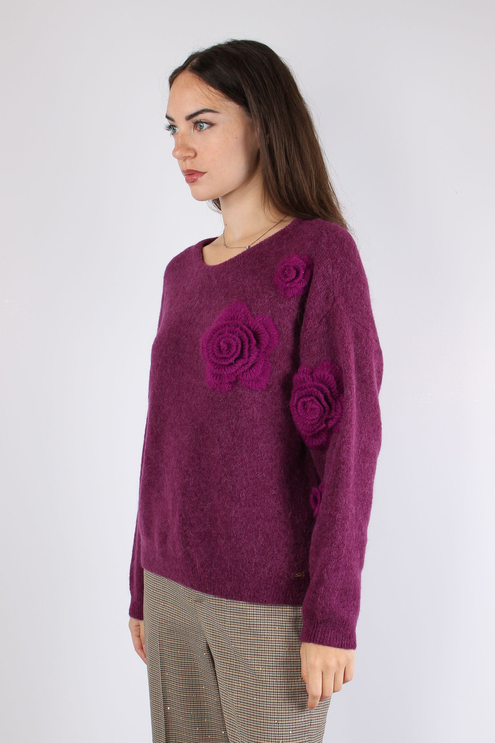 Maglia Over Applicazione Rose Wine