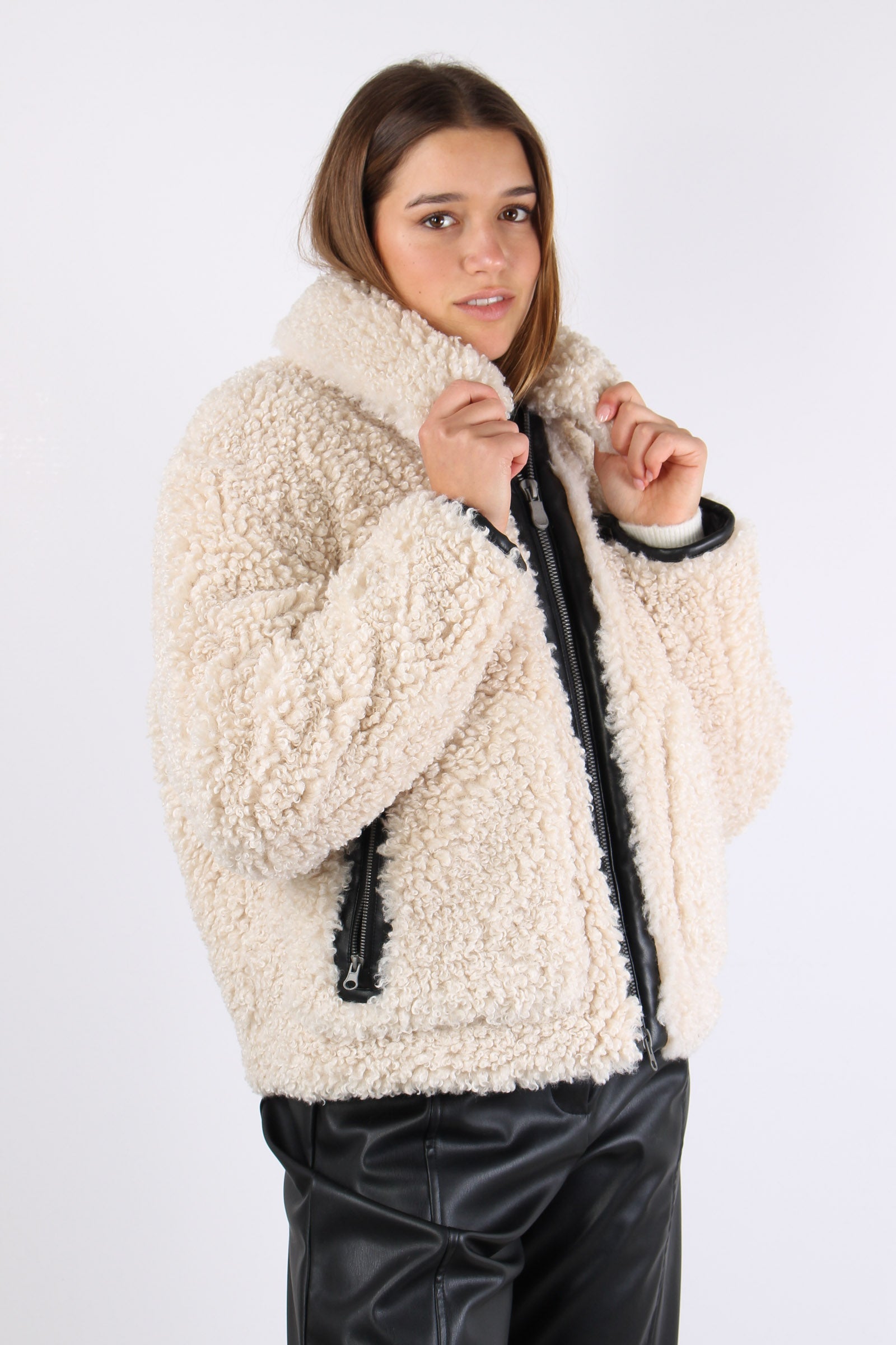 Hester Giubbotto Teddy Zip Eco Beige