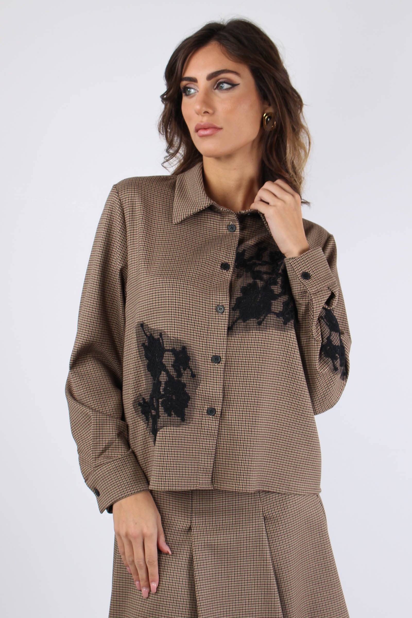 Camicia Inserto Pizzo Micro Check