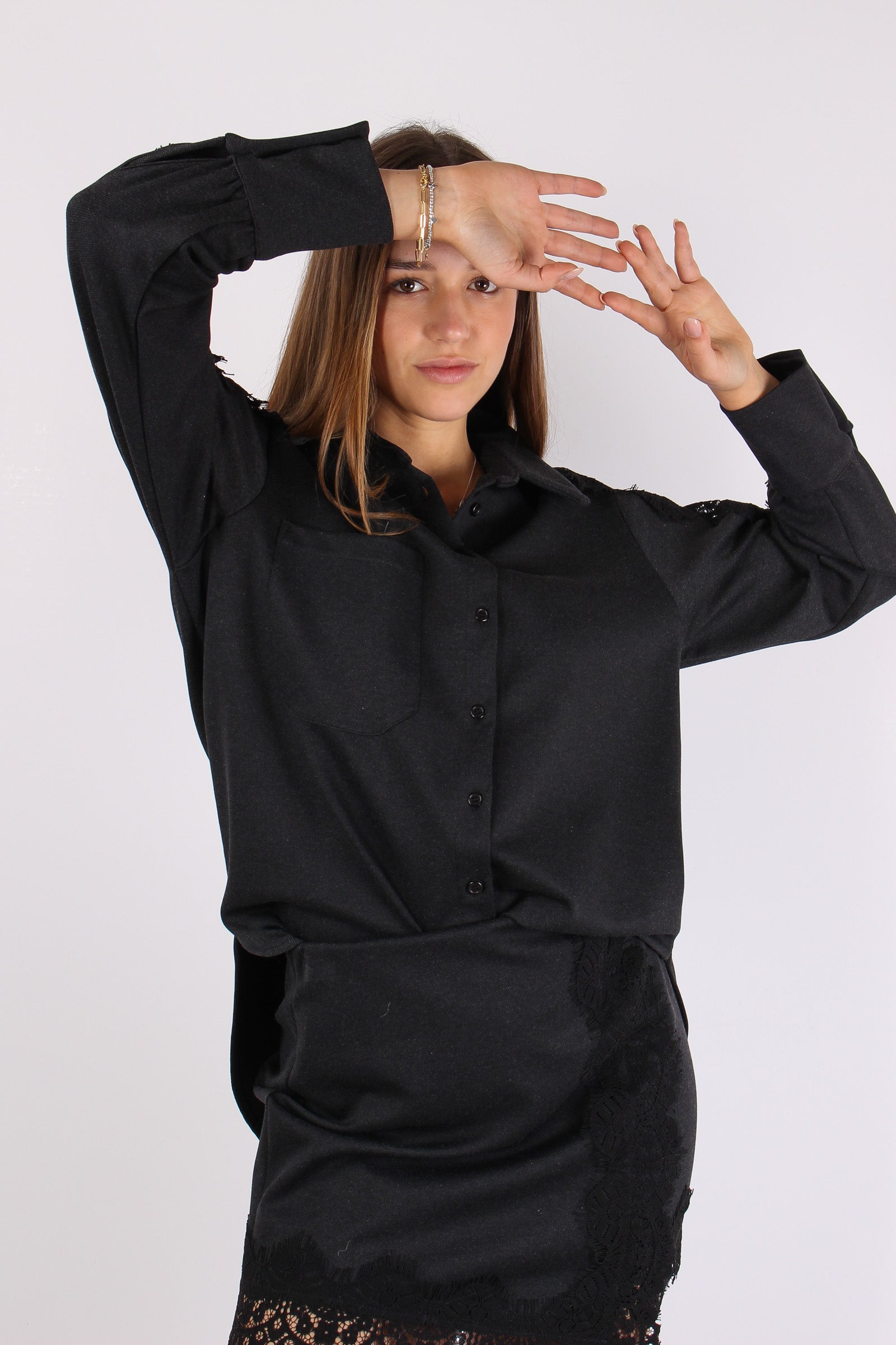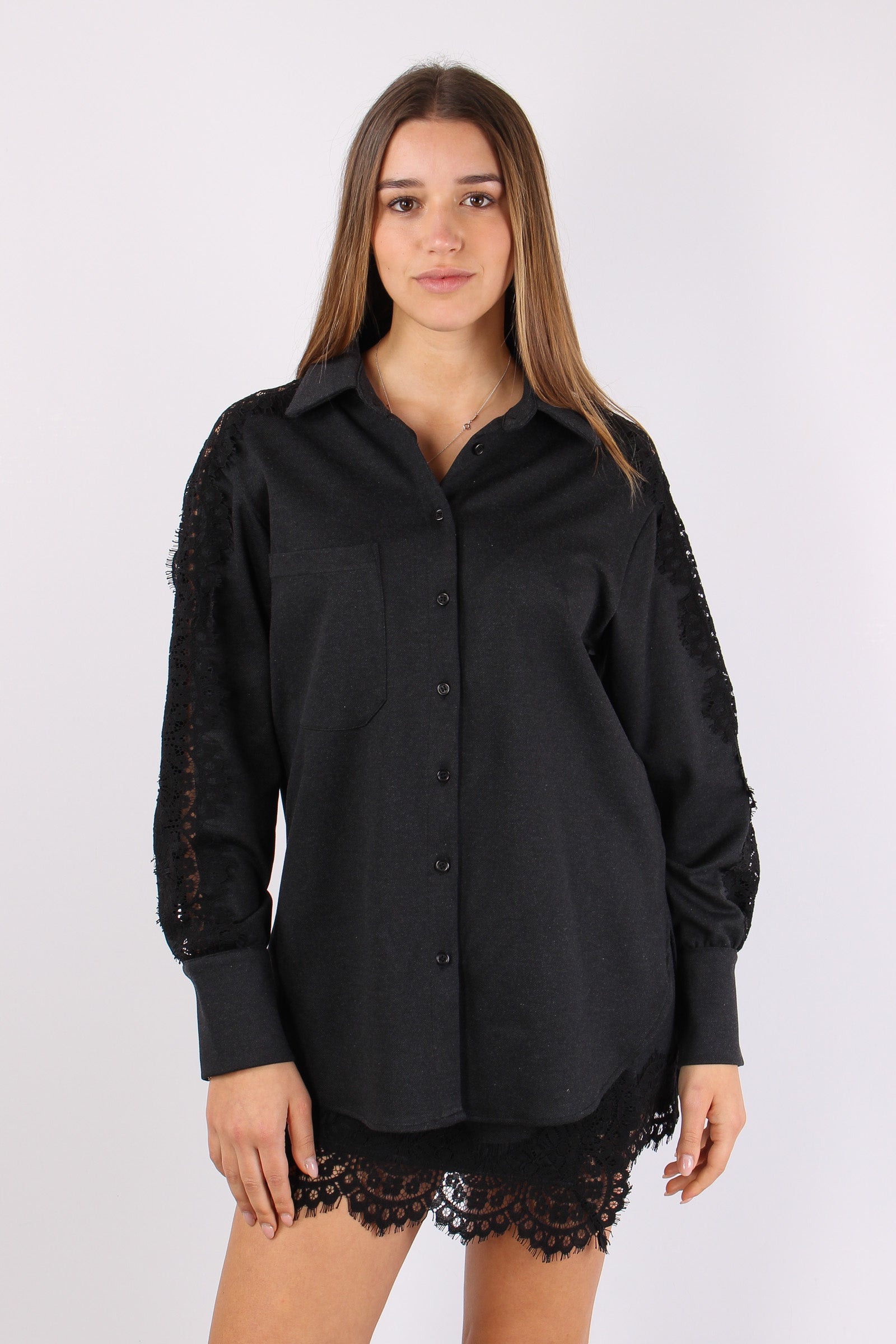 Camicia Over Inserto Pizzo Antracite