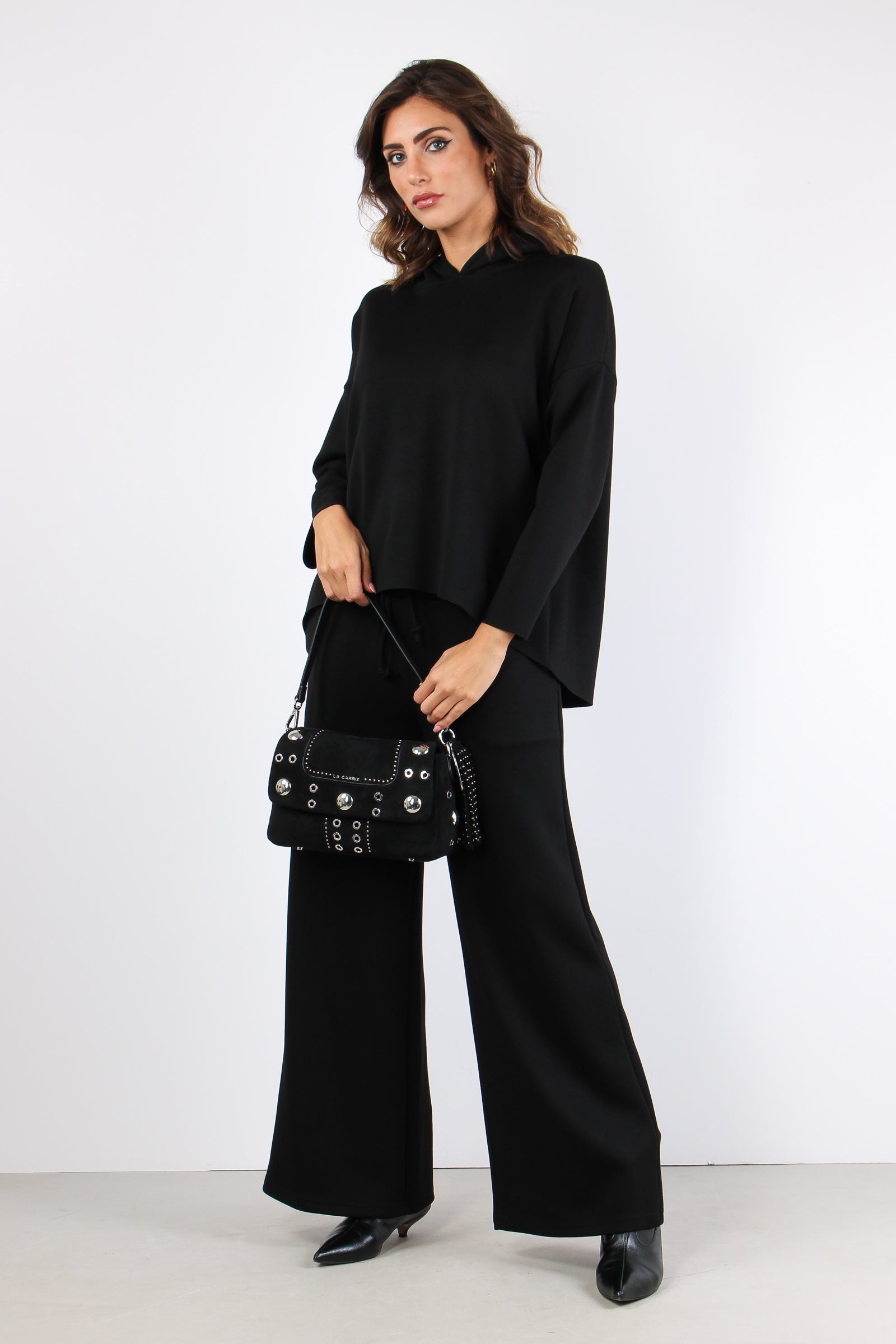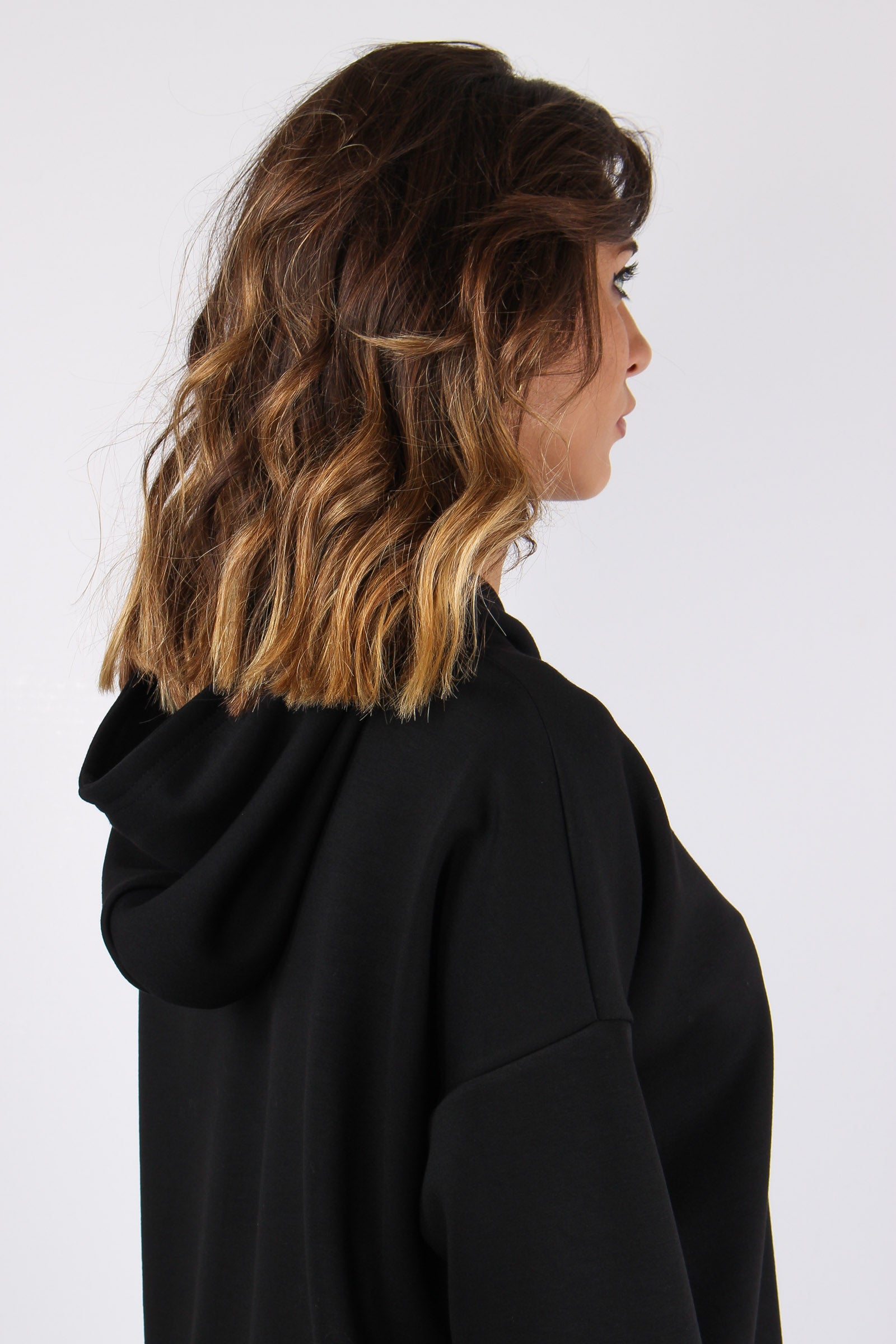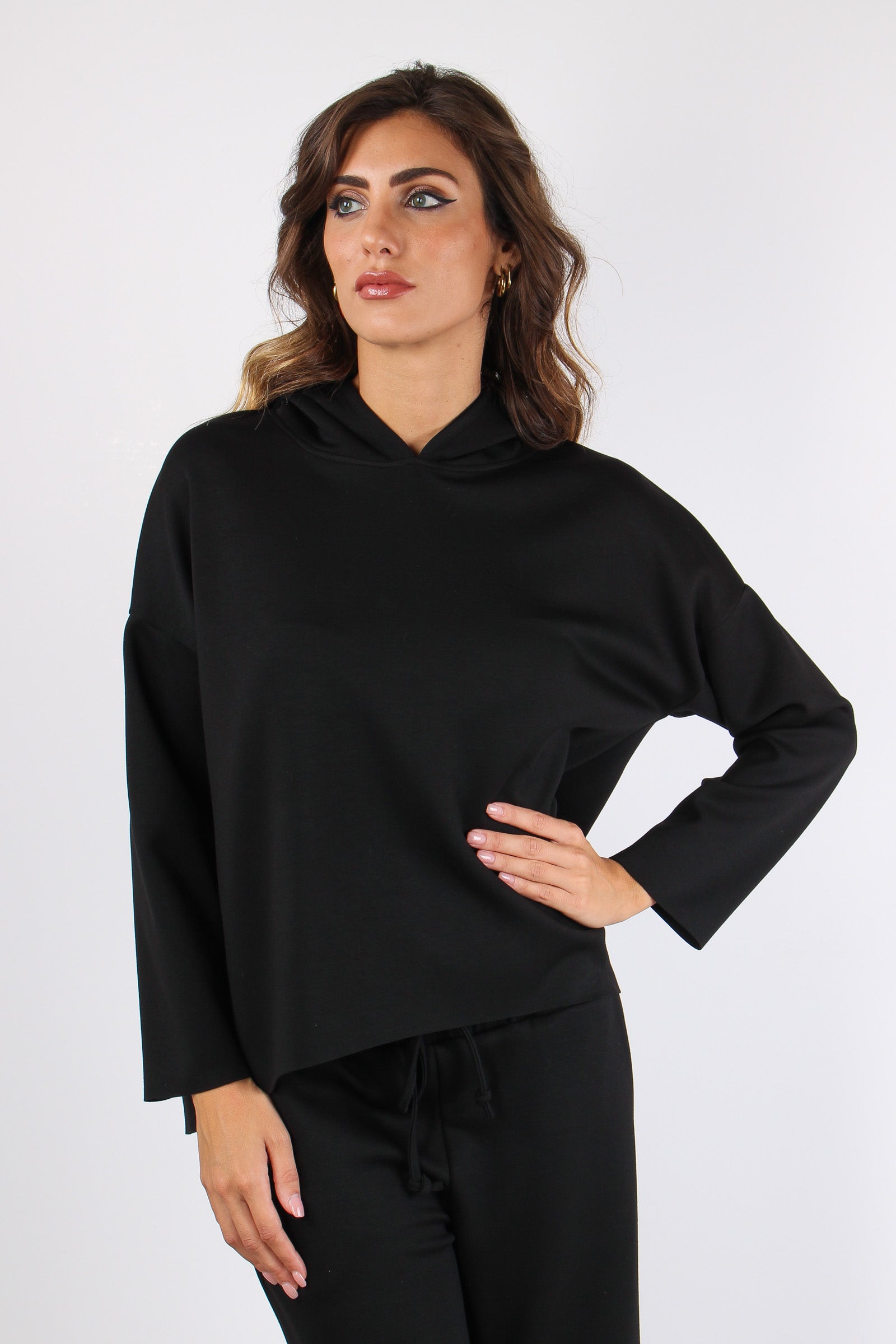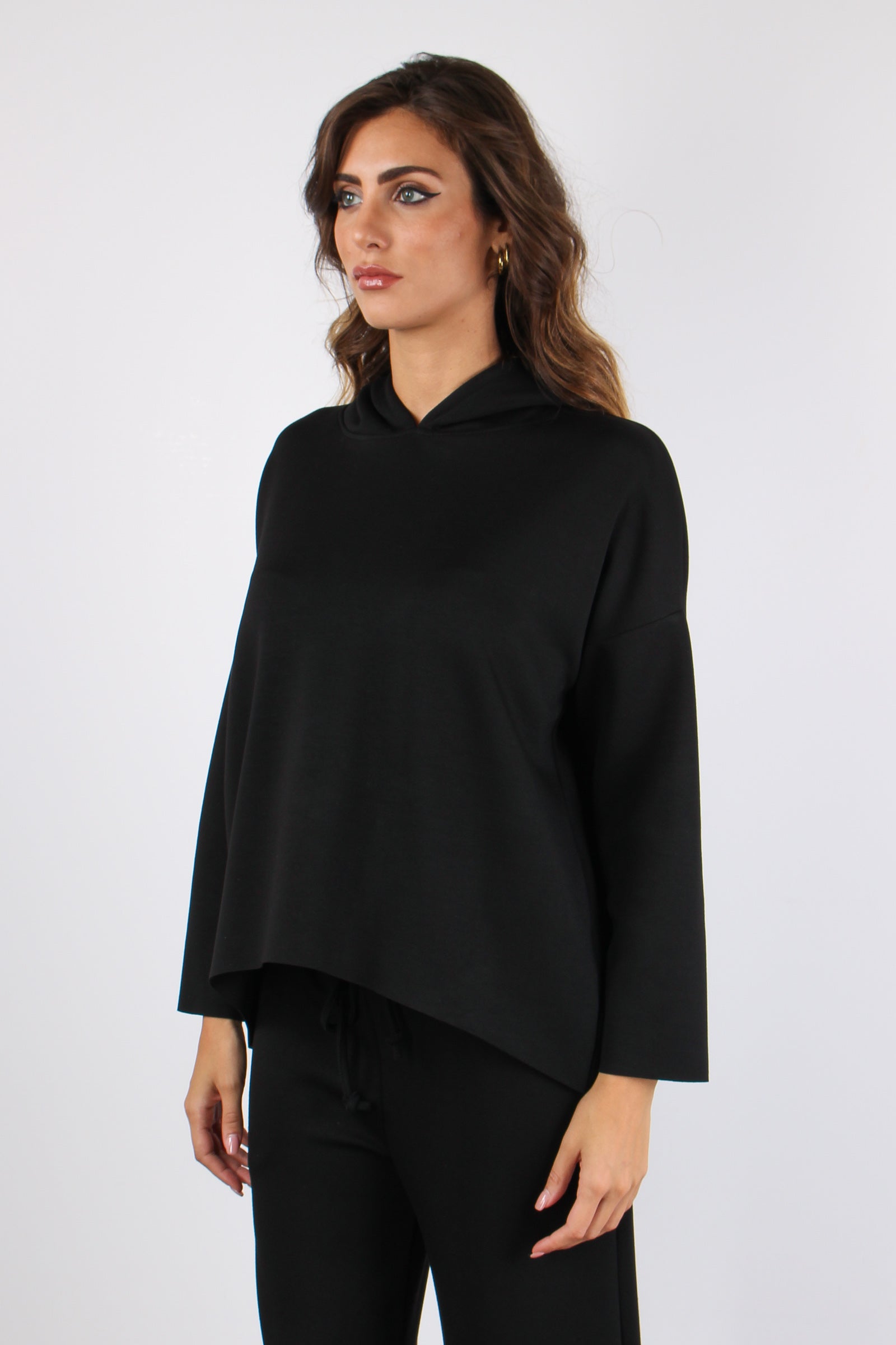 Felpa Stondata Cappuccio Modal Nero