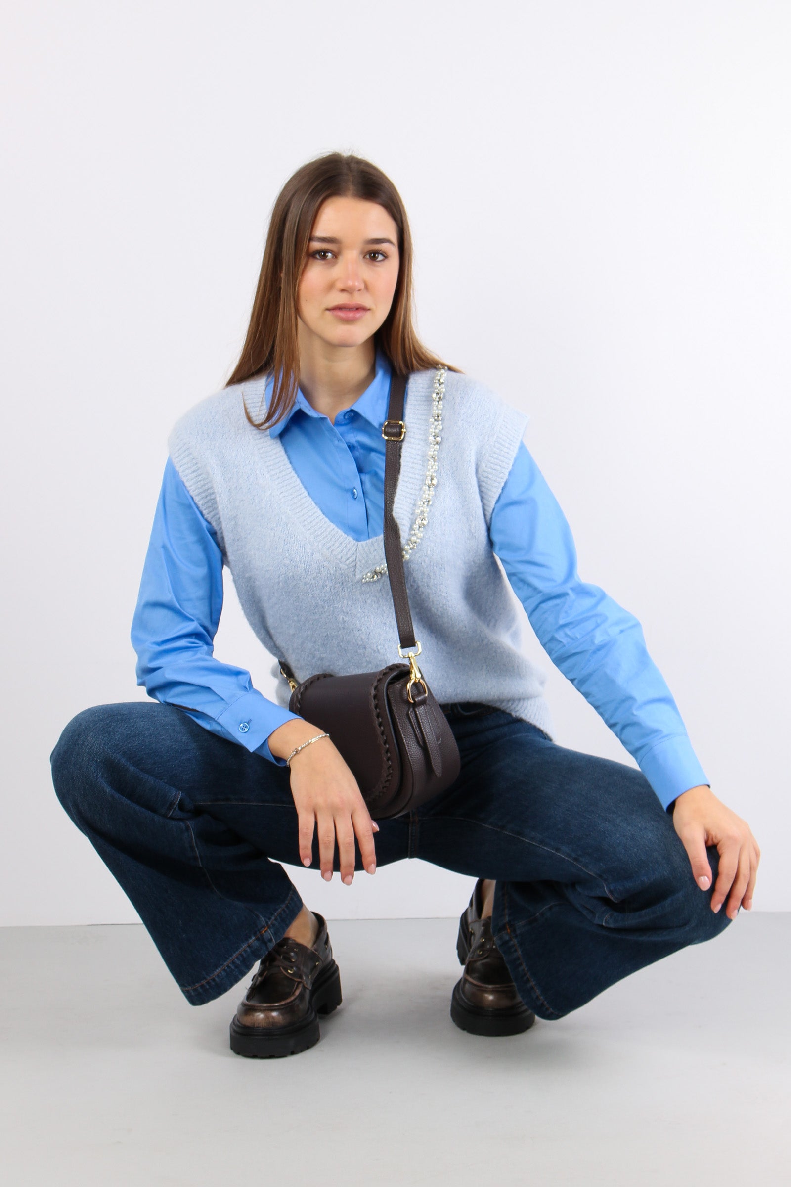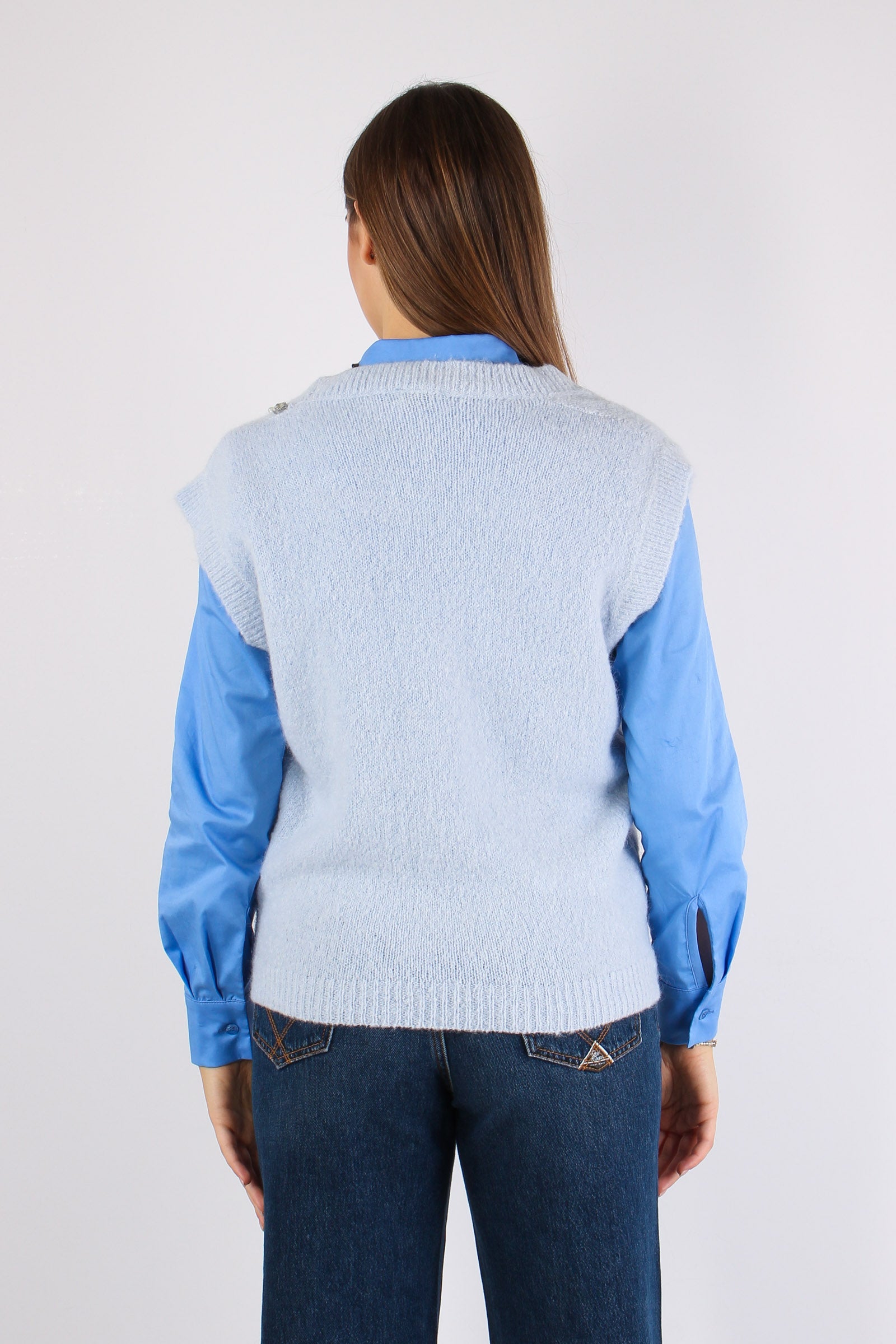 Gilet Profilo Gioiello Misto A Azzurro
