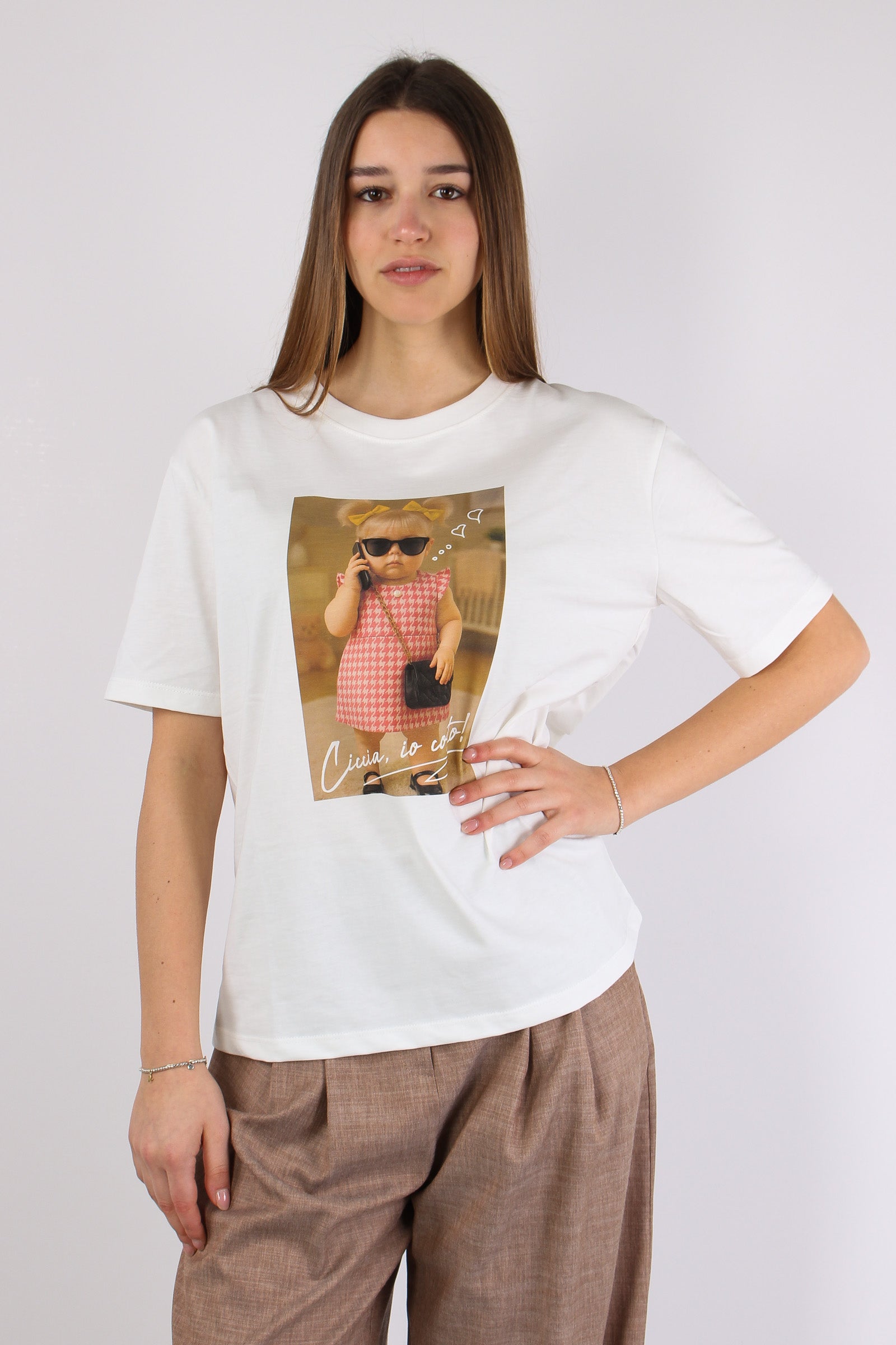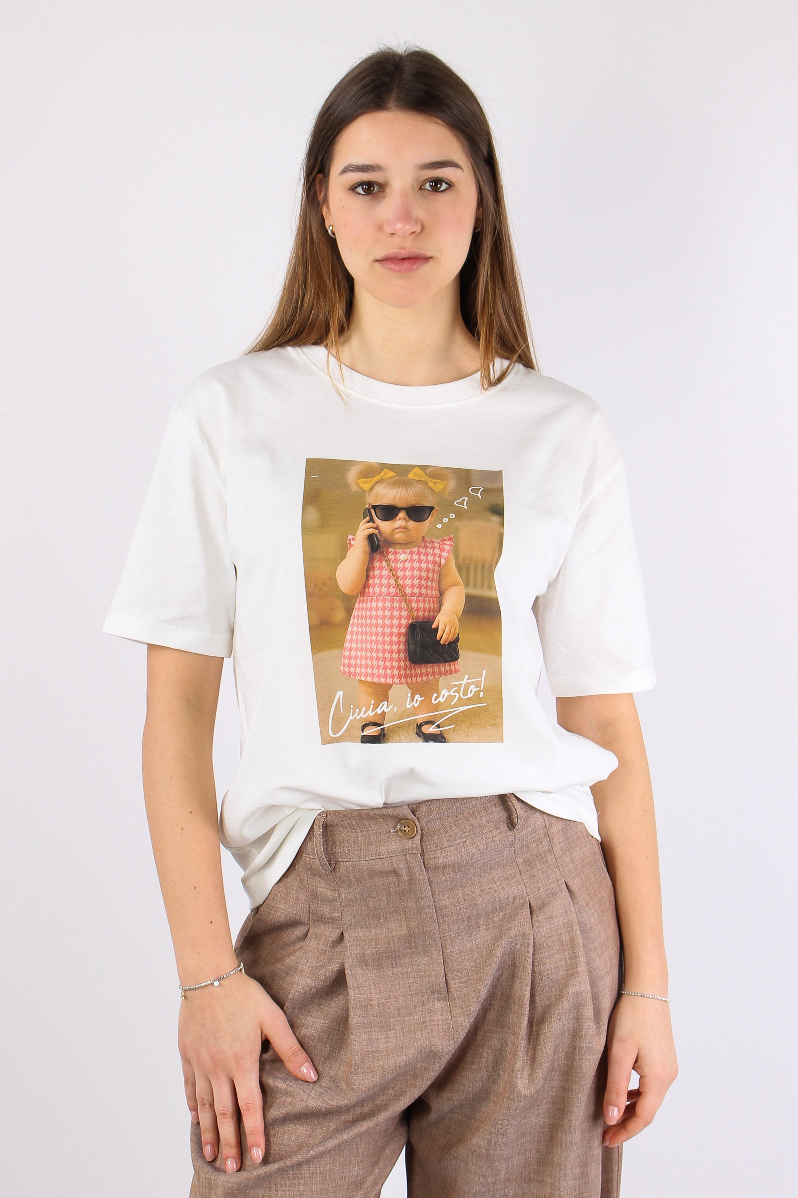 T-shirt Stampa Bimba Telefono Bianco