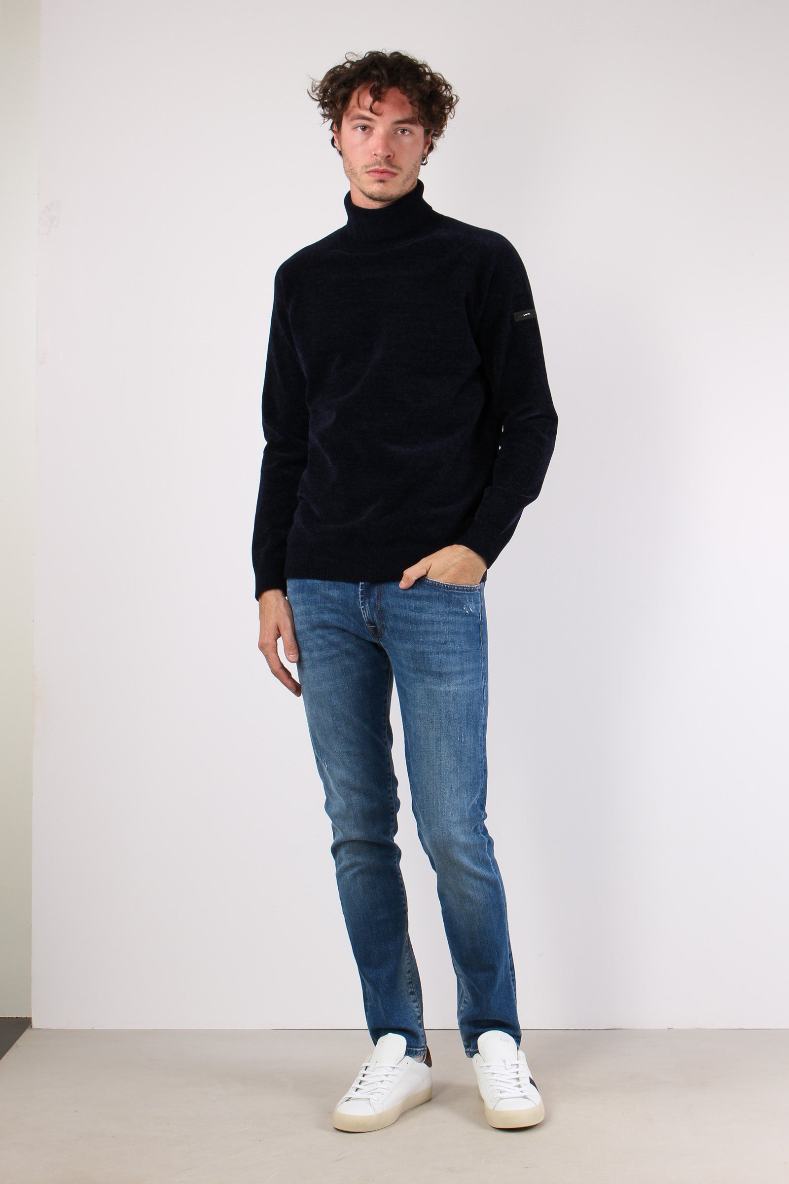 Maglia Collo Alto Ciniglia Blu Navy